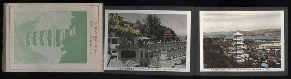 1950s The Tiger Balm Gardens hand-colored photo small album, including 20 photos. Except for one of the size of 4.5x6cm, the other photos are 6x8.5cm in size