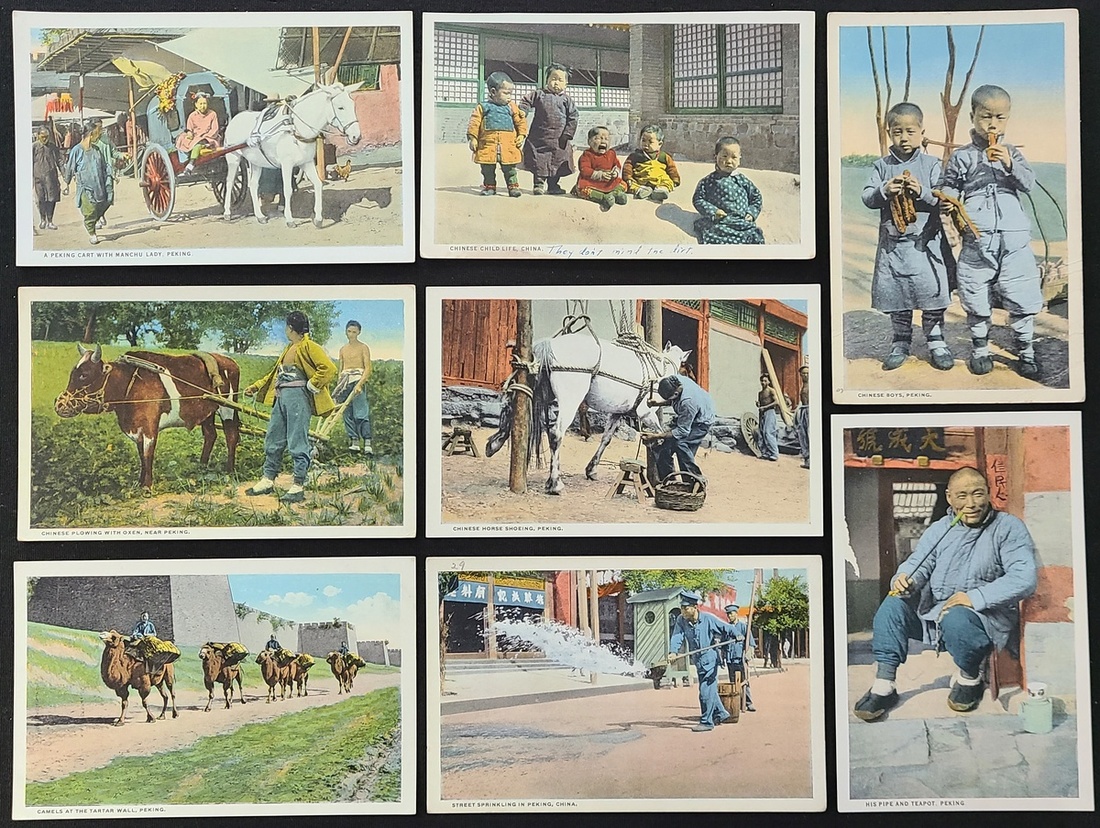 民國三十年代北京風俗彩色圖畫明信片一組17件,均未使用,保存完好