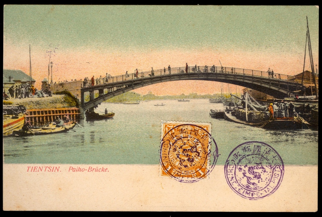 Paiho Bridge in Tientsin, bearing C.I.P. 1c. cancelled by a personally made h.s. in violet