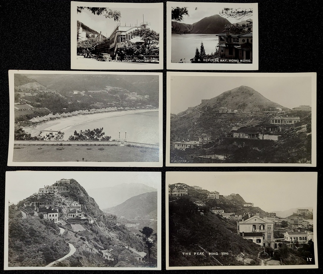 1920s Three real photo postcards from The Peak District of Hong Kong and one from Repulse Bay, plus two small photos of Repulse Bay (one of which is Repulse Bay Lido Hotel).