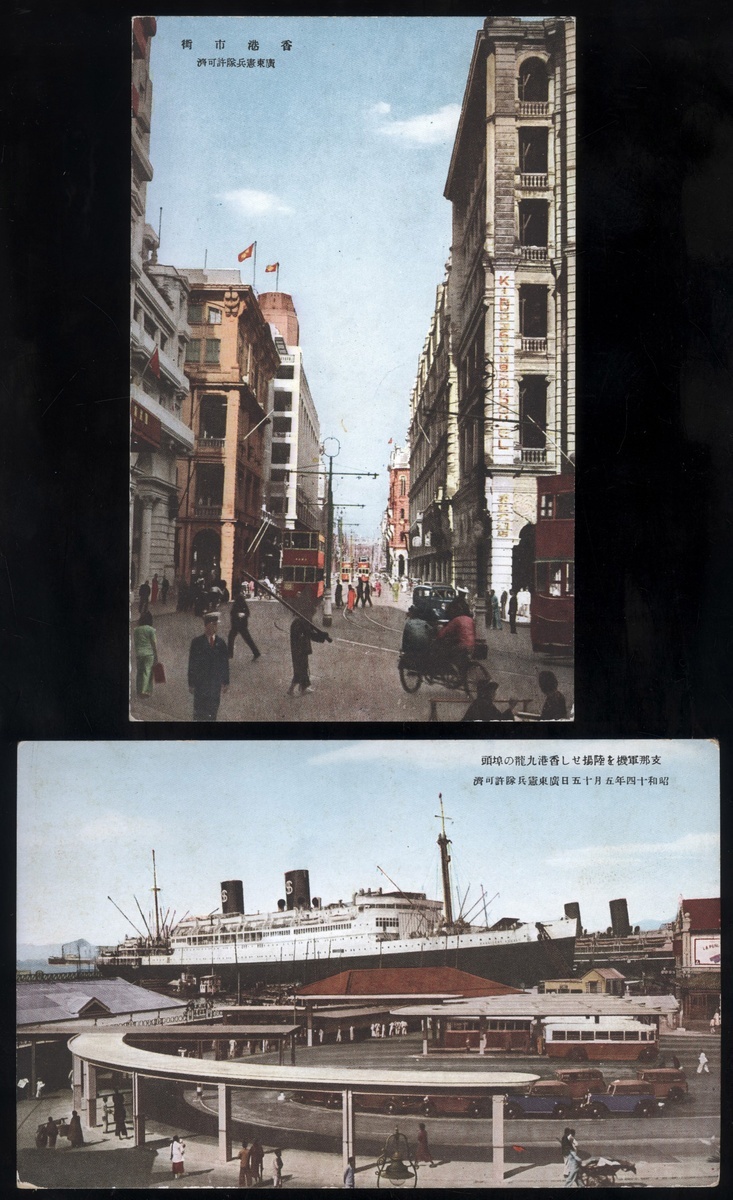 1930s Guangdong Kawamura Co., Ltd. issued two Hong Kong postcards, one with the street scene in Central, and the other with the Tsim Sha Tsui Ferry Terminal in Kowloon.
