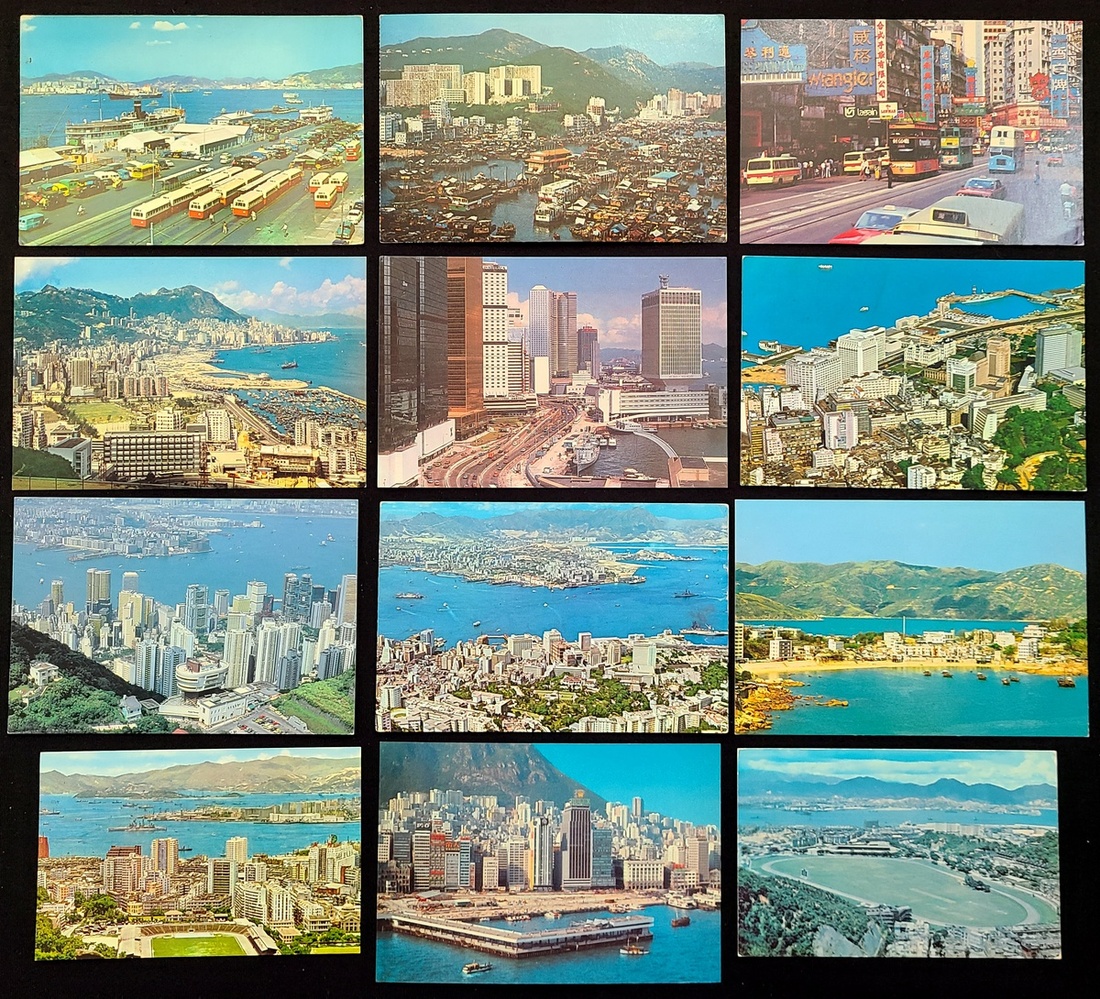 1960-1980s twelve postcards from Hong Kong Island, including areas such as Aberdeen, Causeway Bay, Stanley, Hong Kong-Macau Ferry Terminal and Central etc.