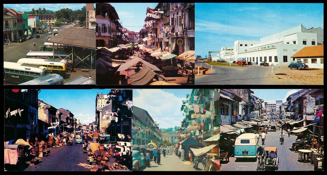 1950-60年代星加坡明信片六枚,包括新啓用的巴耶利巴機塲,Sago Lane,China Town等.