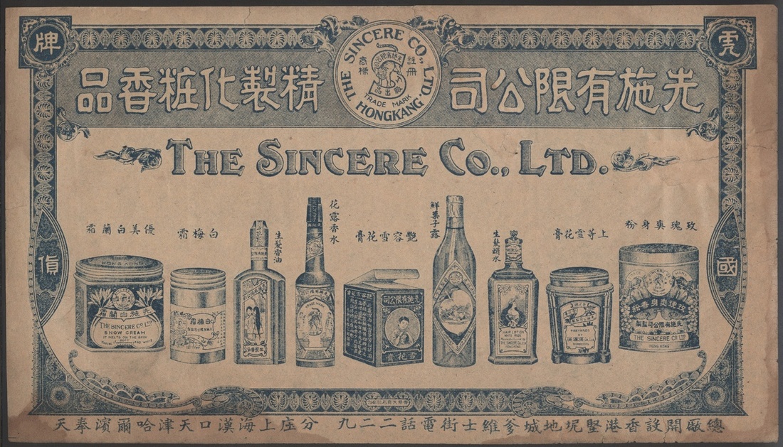 1920-1930s The Sincere Co., Ltd. Cosmetics advertising paper, monochrome printing, elegant design, little repair on the edge. Very rare early promotional material . Size: 19.5x34.5cm,