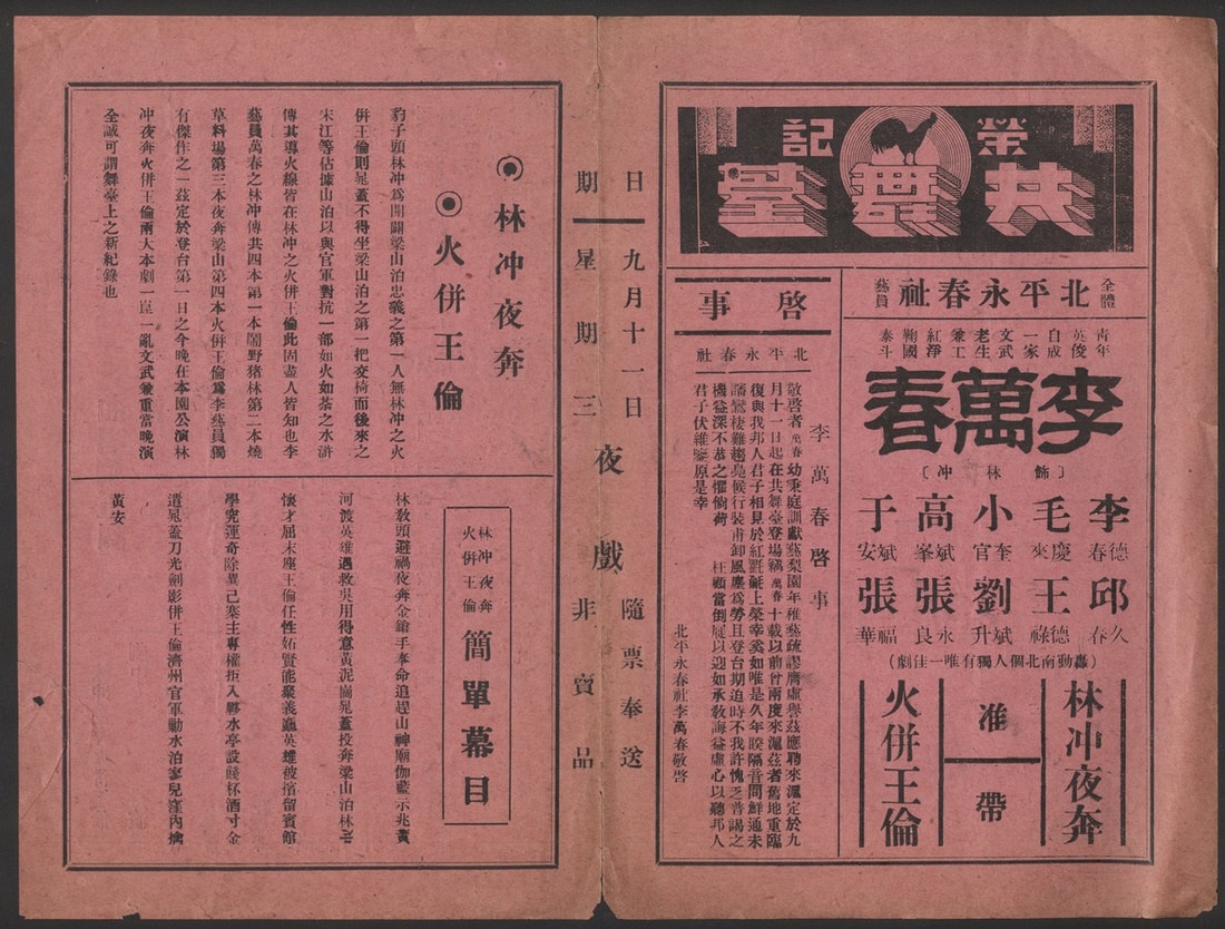1930-1940s Peking Rongji Gong Stage Peking Opera Leaflet. Well preserved and precious. Size: 20.5x27.5cm