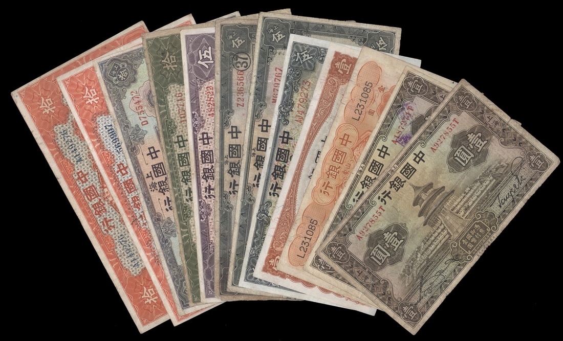 Bank of China, lot of 12 notes ranging from 1 to 10 Yuan, 1918 to 1935, various places of issue, (Pick various), generally very fine to extremely fine, viewing highly recommended (12)