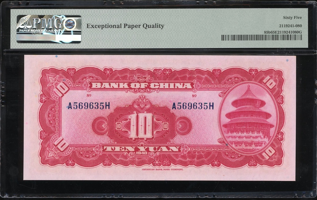民國二十九年(1940)中國銀行拾圓一對,編號A569634H-35H,均評PMG 65EPQ