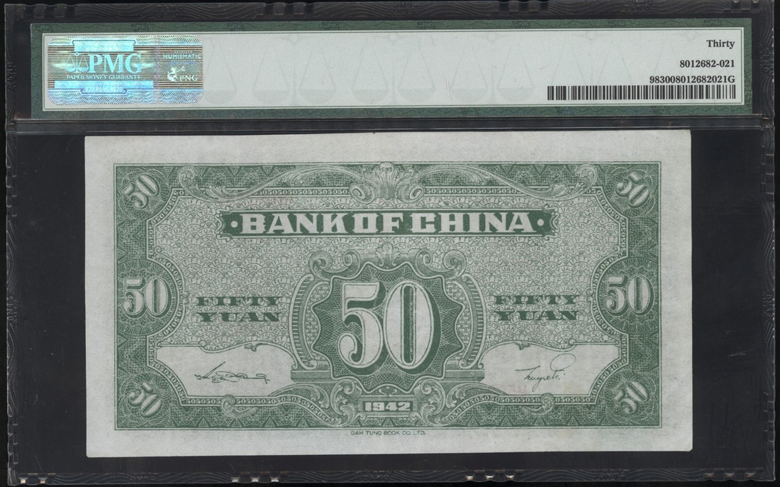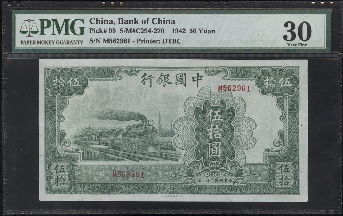 民國三十一年中國銀行伍拾圓,編號M562961,PMG 30
