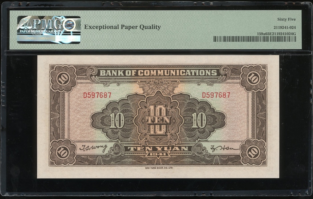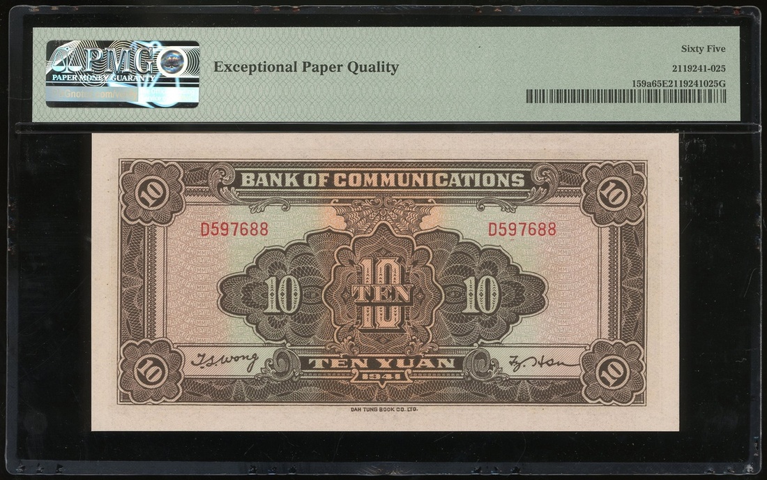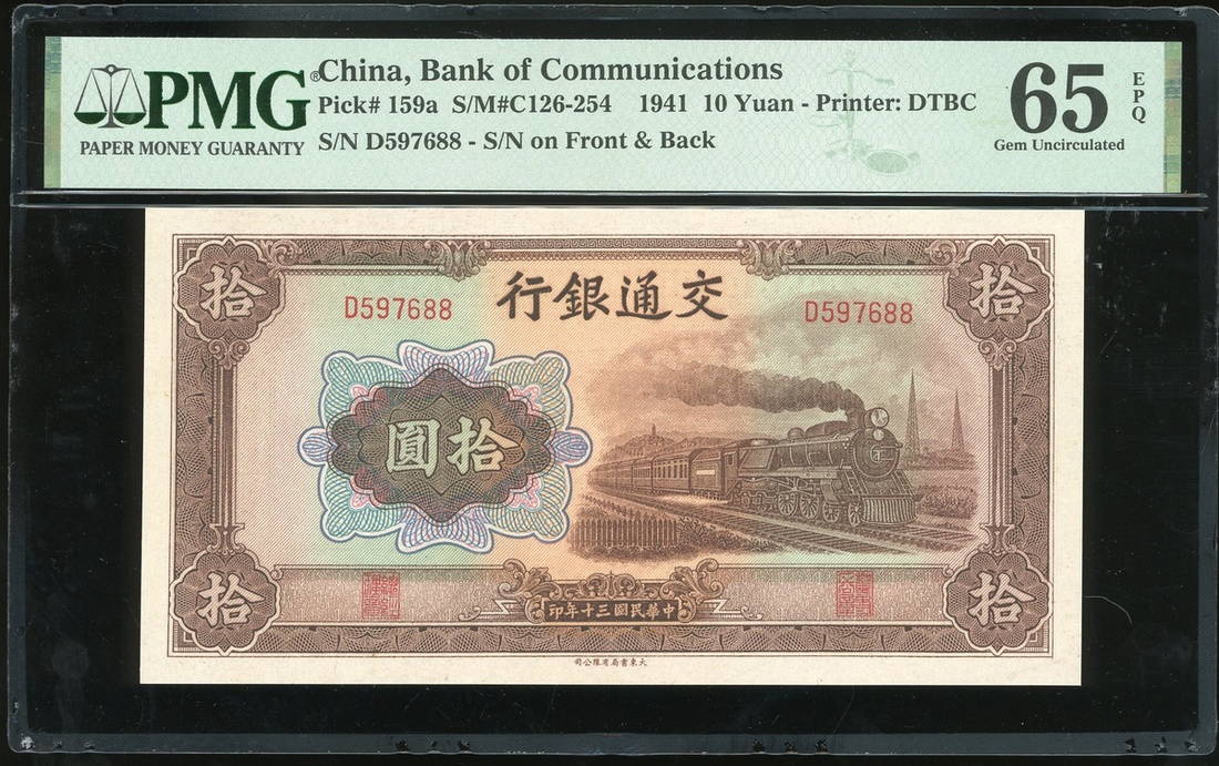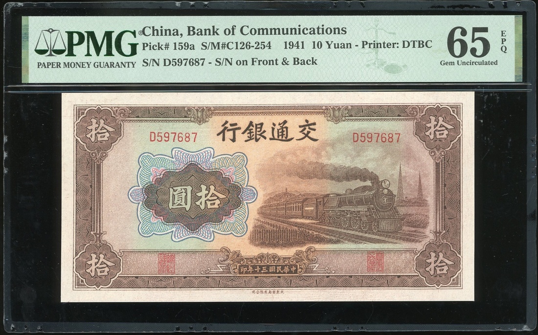 民國三十年(1941)交通銀行拾圓一對,D597687-88,均評PMG 65EPQ