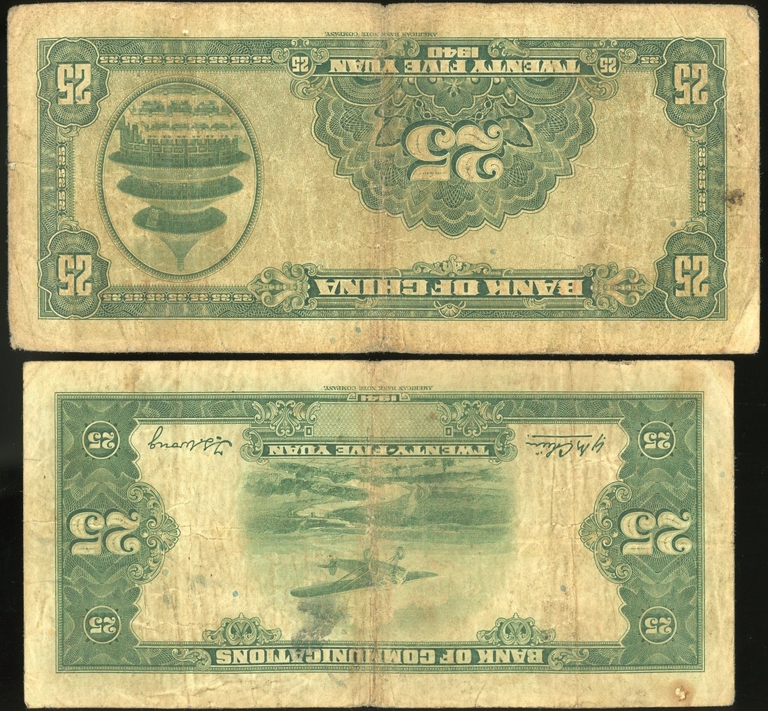 Republican China, lot of 2 notes comprising of Bank of Communications 25 Yuan, 1941, serial number and Bank of China, 25 Yuan, 1940, serial number, (Pick 86, 160), generally fine (2)