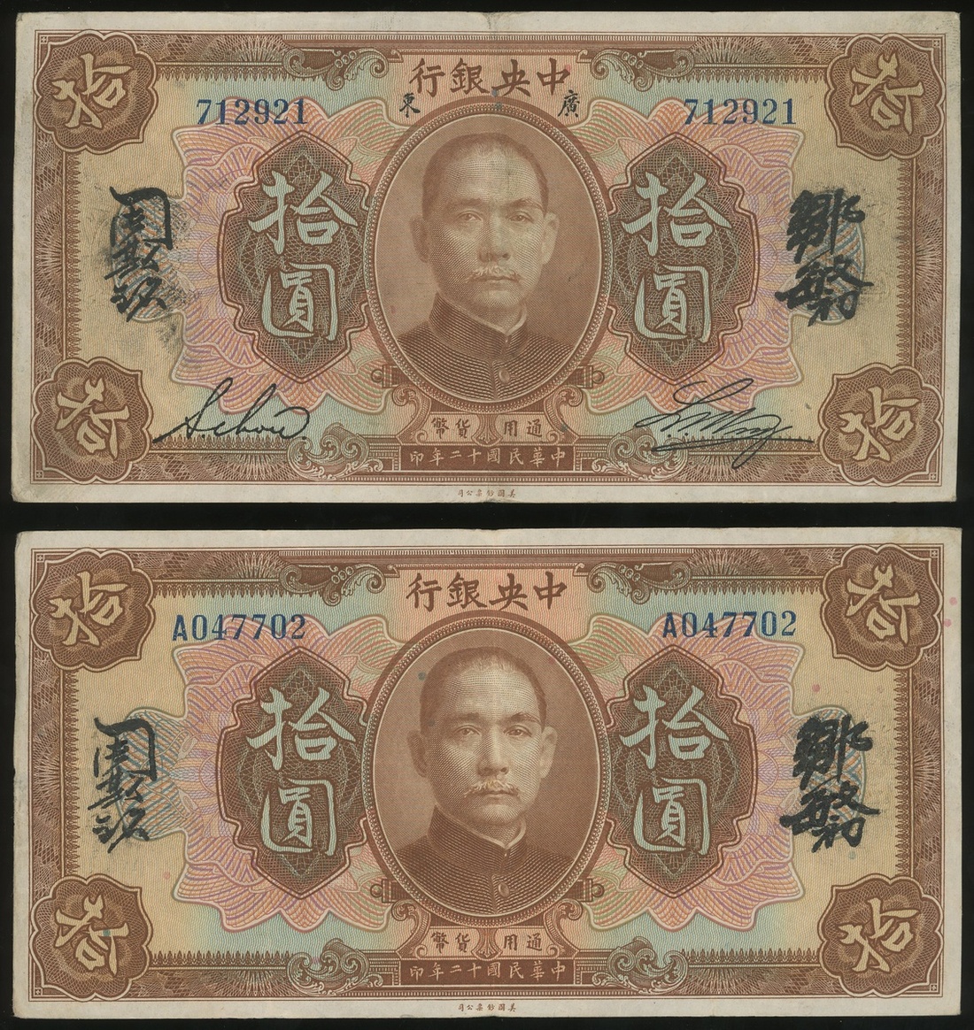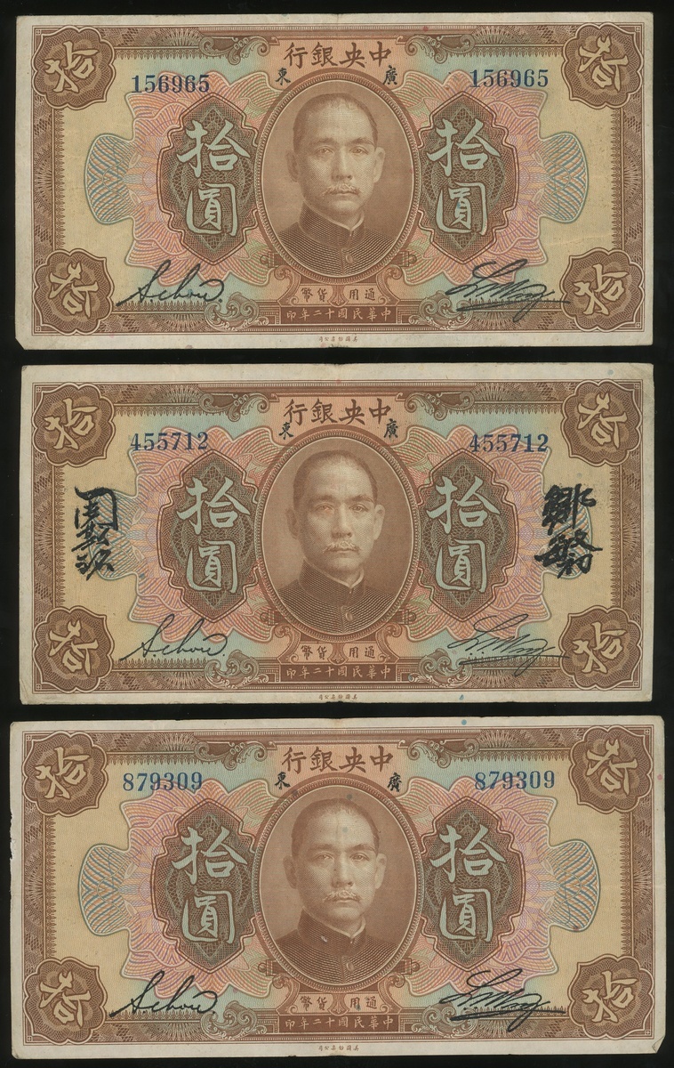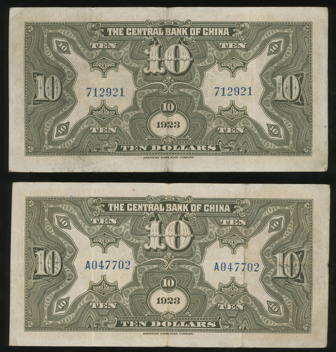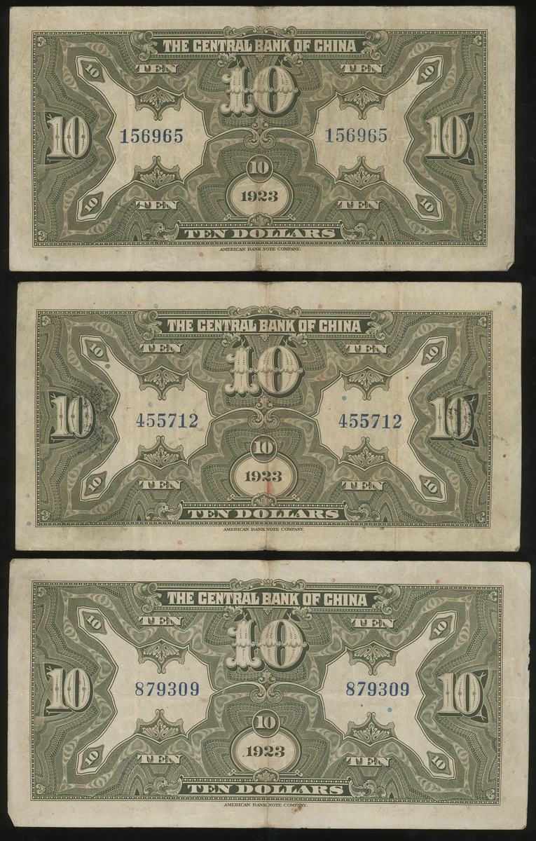民國十二年(1923)中央銀行拾圓,一組5枚,不同版別,VF或更佳品相