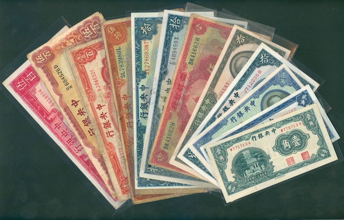 民國十七至三十八年中央銀行紙幣一組十二枚,由壹角至伍佰圓,均F-UNC,建議預覽