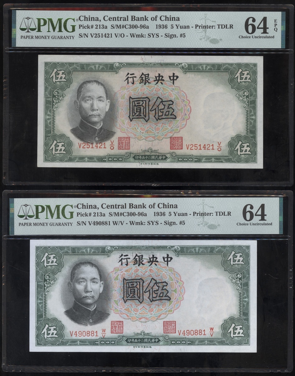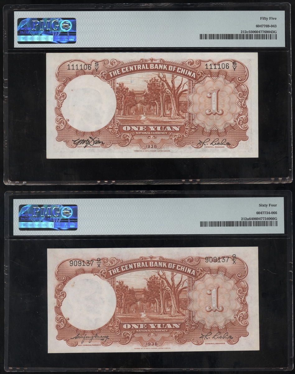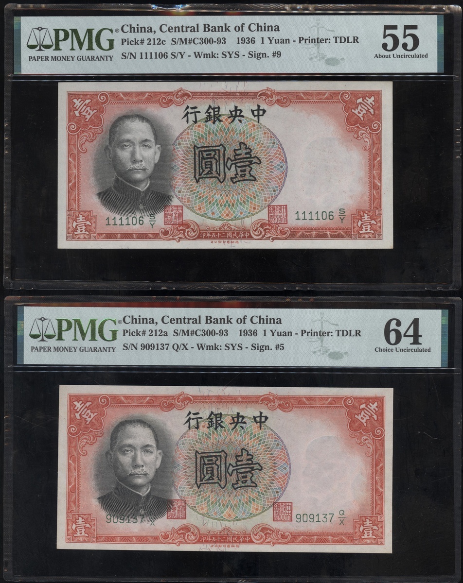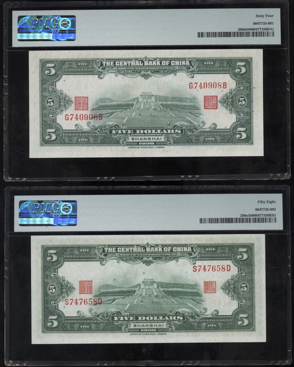 Central Bank of China, (Pick 203, 212c and 213a), graded PMG 55 to 64 (9)