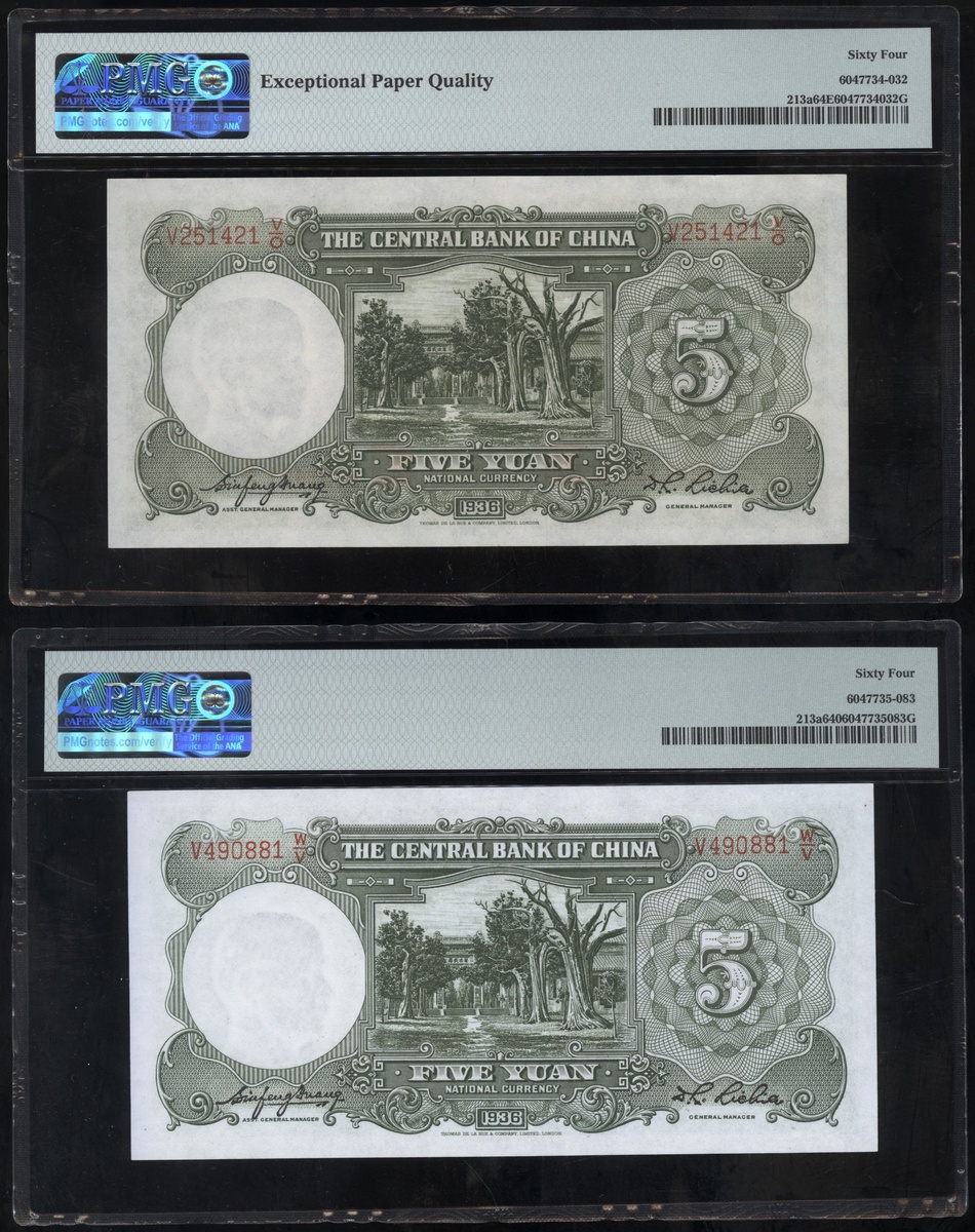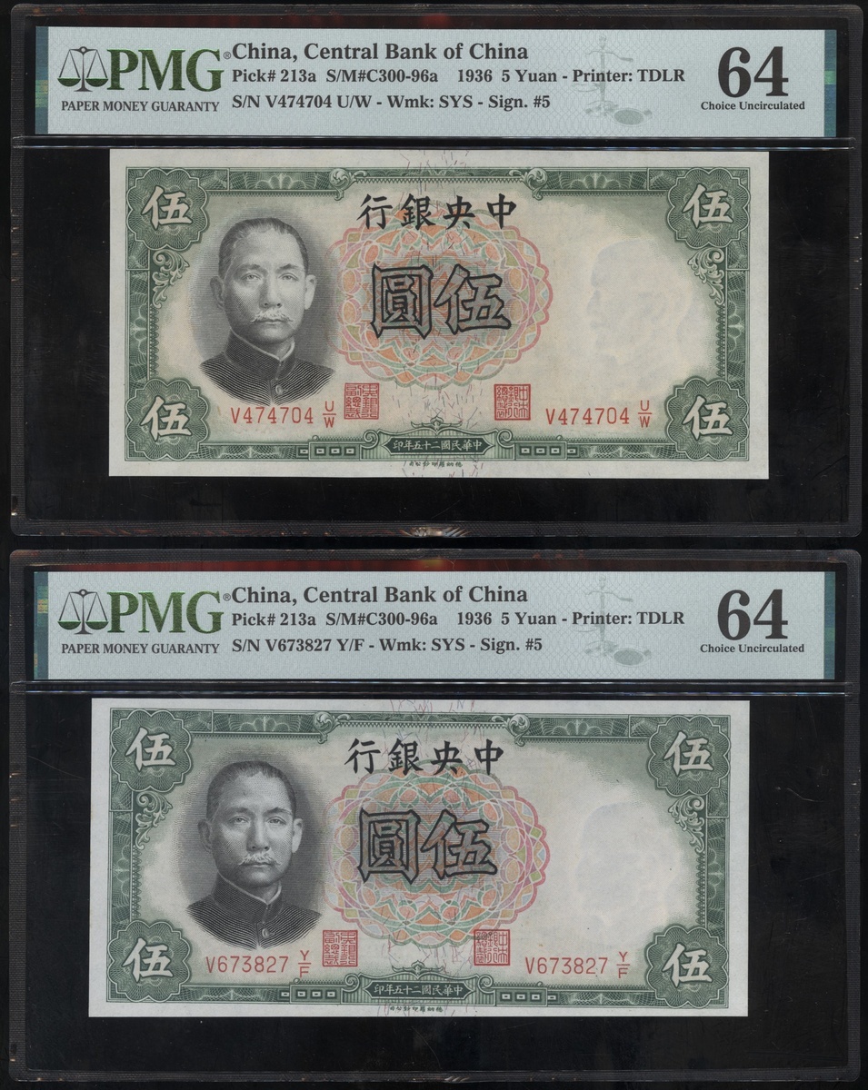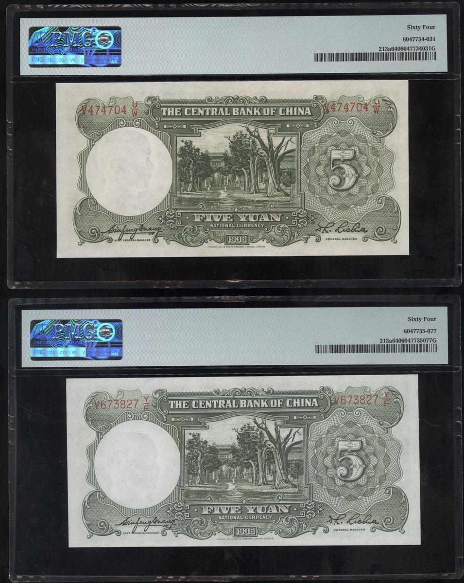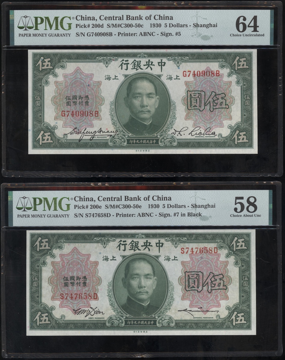 Central Bank of China, (Pick 203, 212c and 213a), graded PMG 55 to 64 (9)
