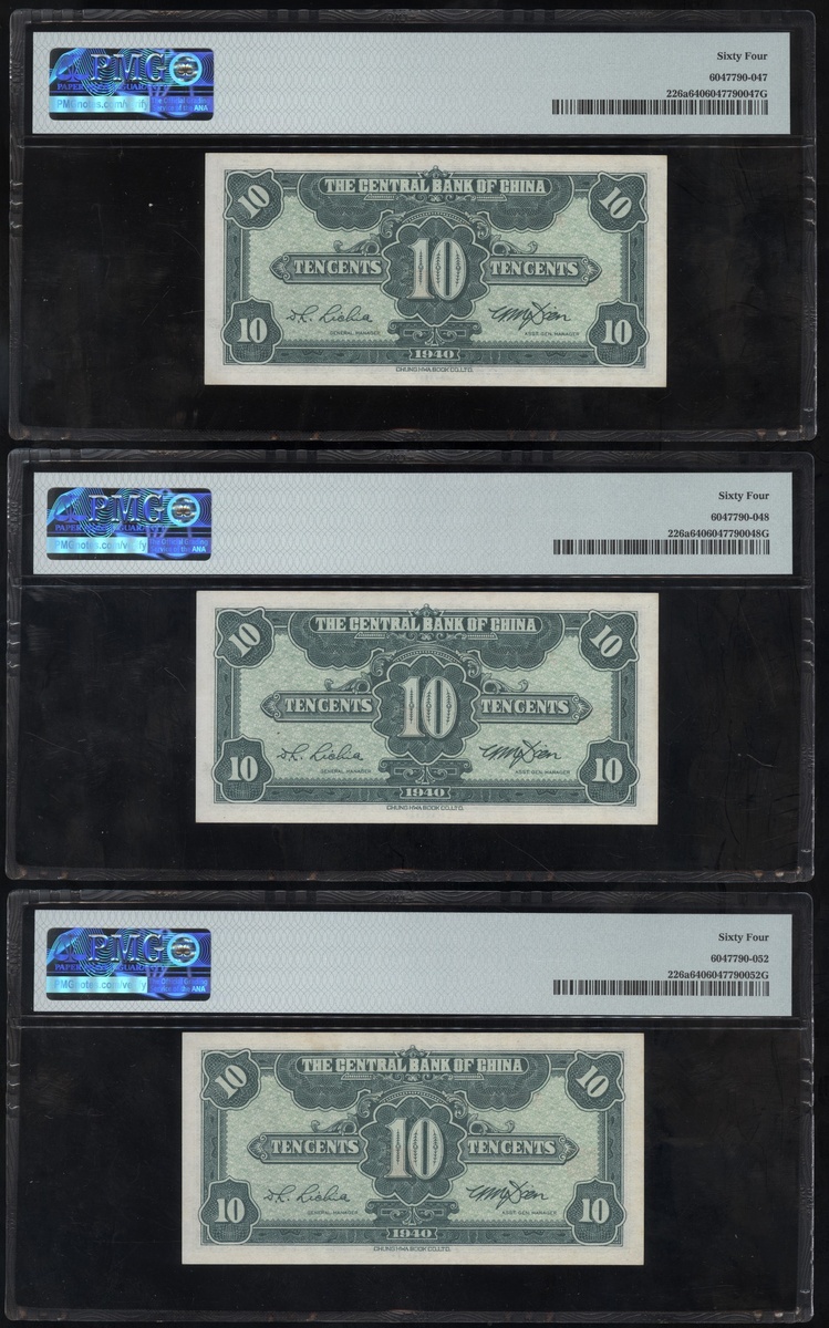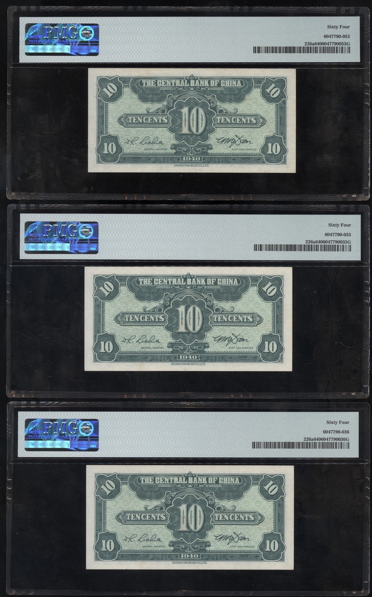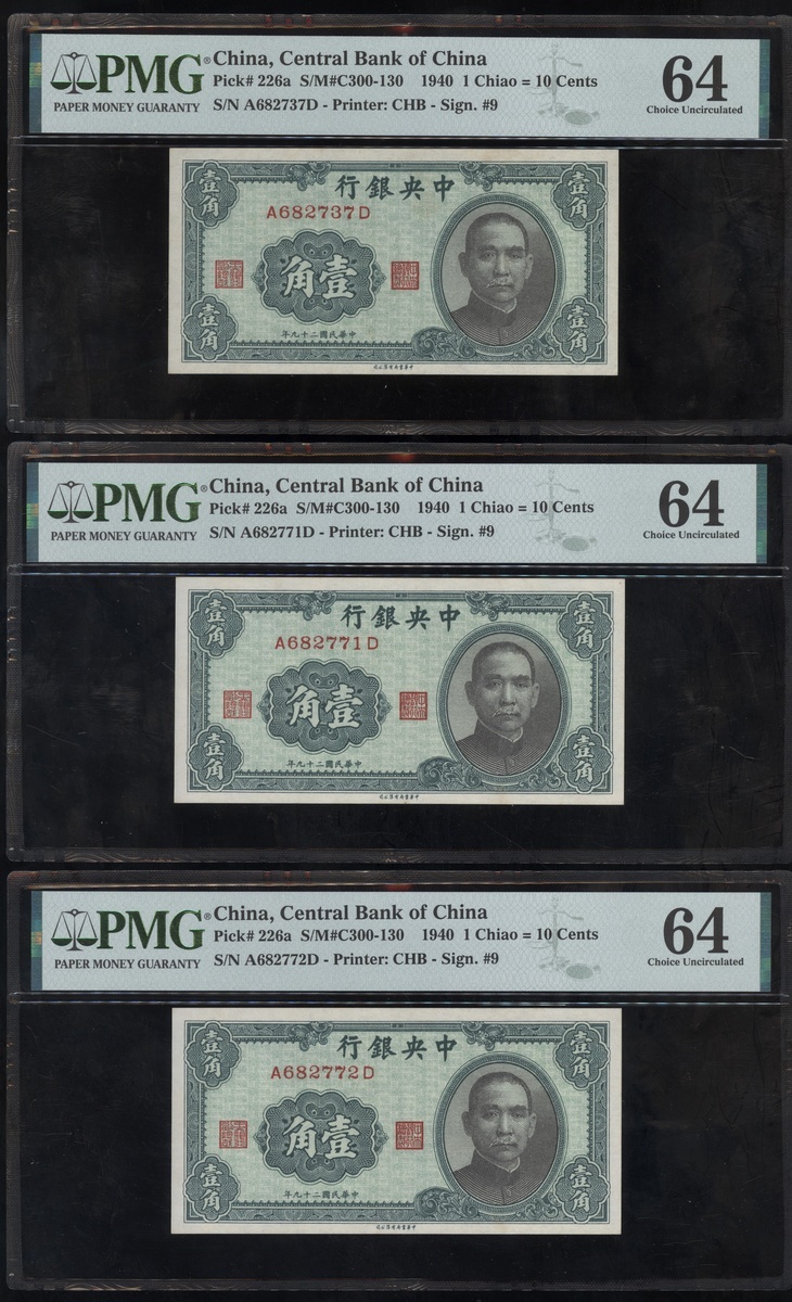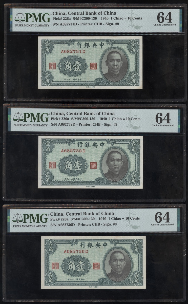 Central Bank of China, (Pick 226a), all graded PMG 64 Choice Uncirculated (6)