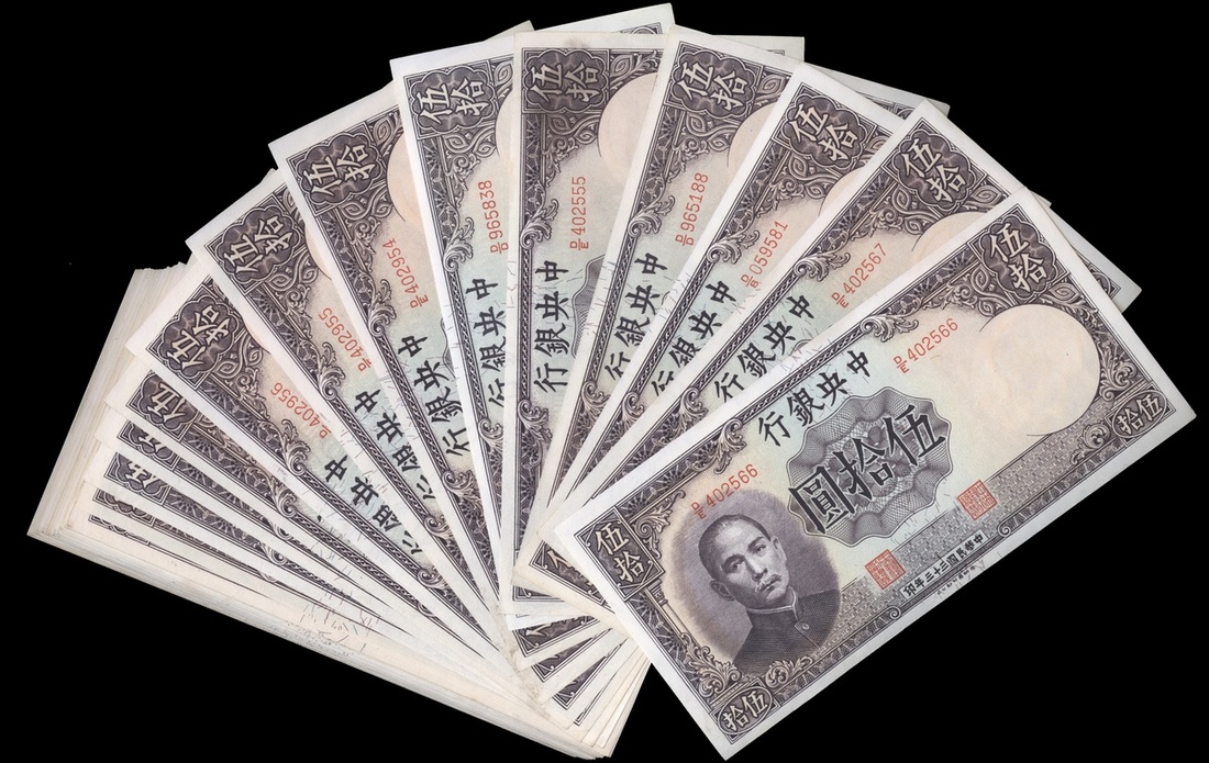 民國三十三年中央銀行伍拾圓一組33枚,GEF-AU