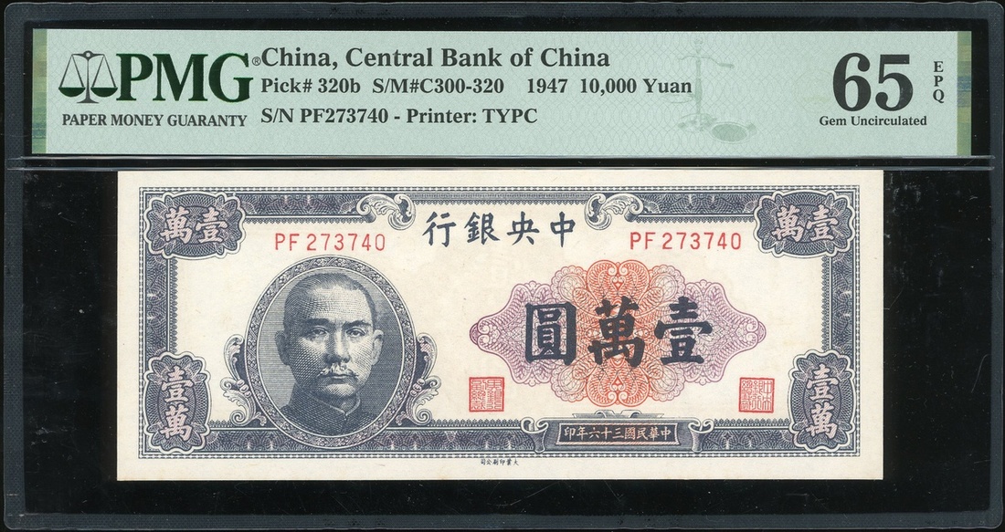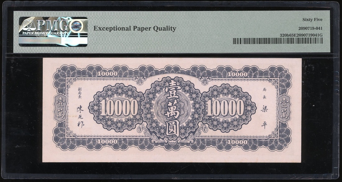 民國三十六年(1947)中央銀行壹萬圓,編號PF273740,大業版,PMG 65EPQ