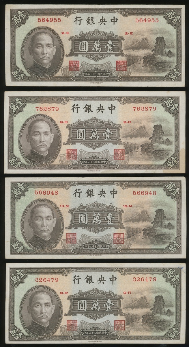 Central Bank of China, group of 4x 10,000 yuan, 1947, 'Small Size Mountain and Sea',