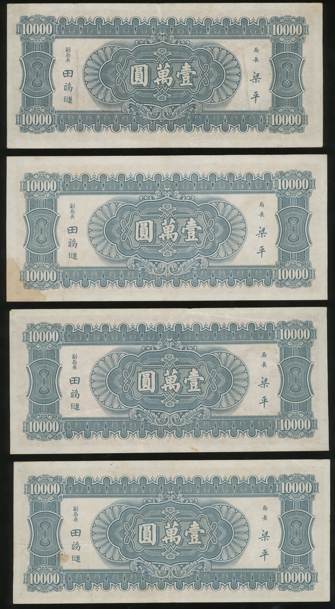 民國三十六年(1947)中央銀行壹萬圓,一組4枚,小山海版,VF品相