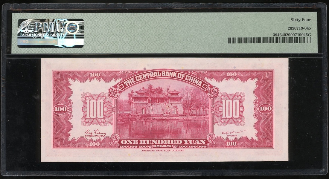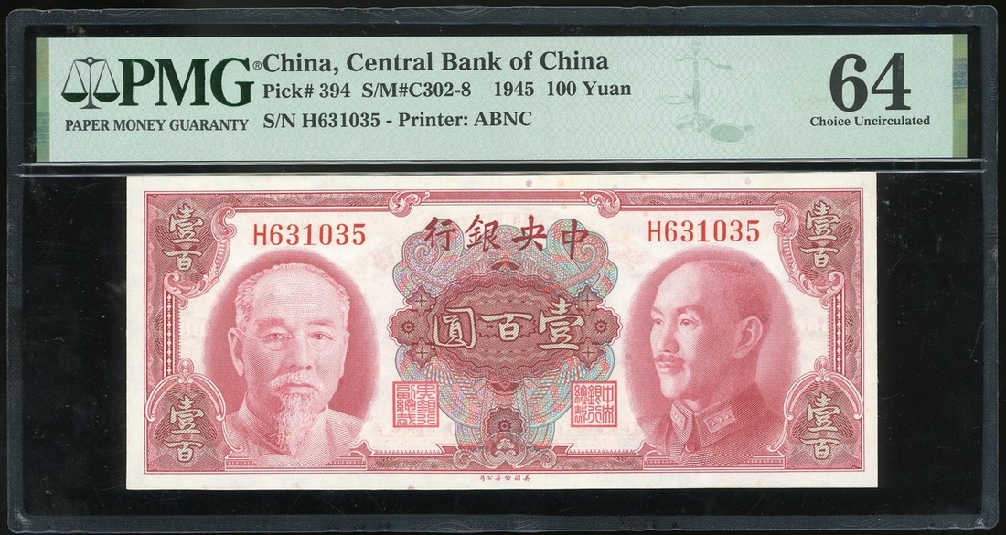 民國三十四年(1945)中央銀行壹佰圓,編號H631035,PMG 64