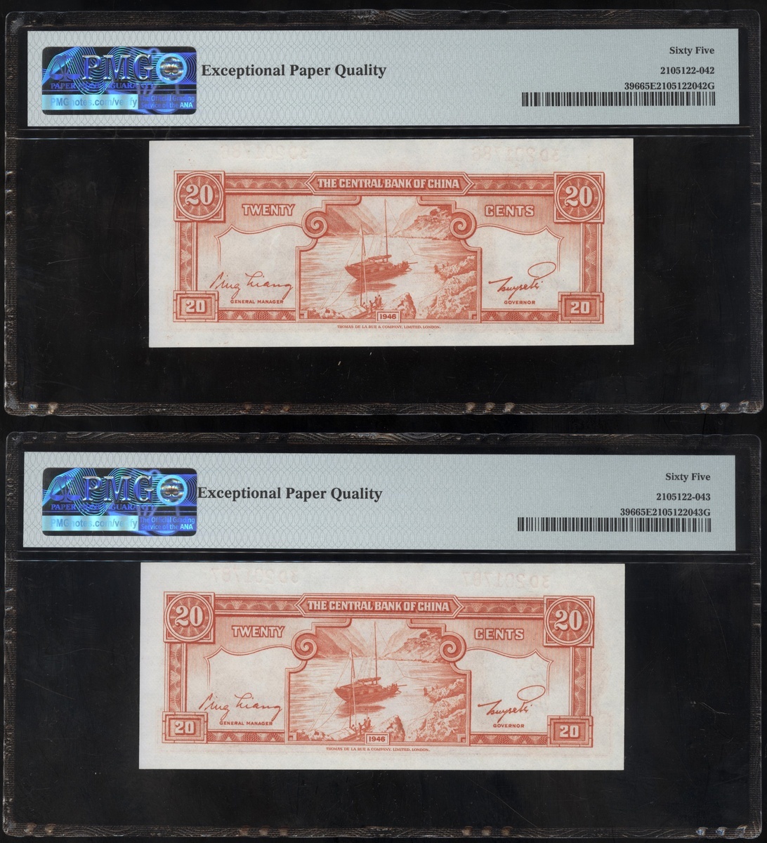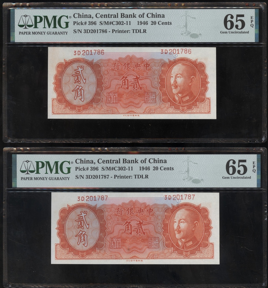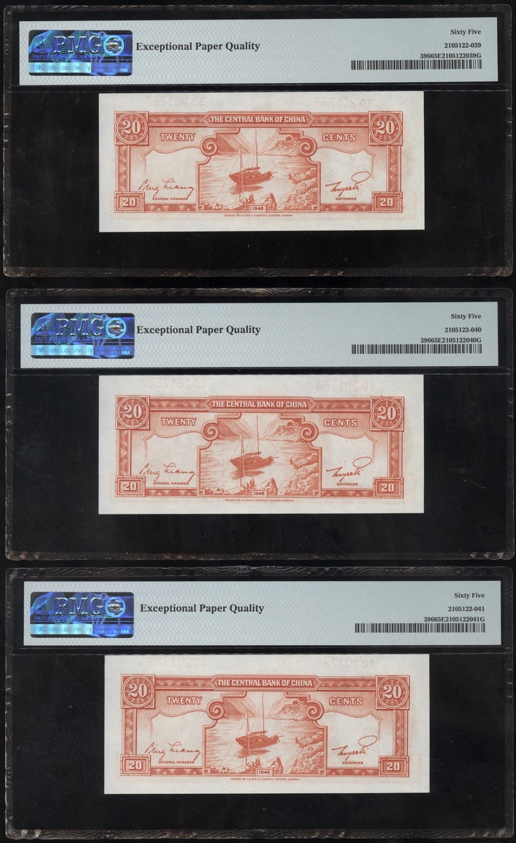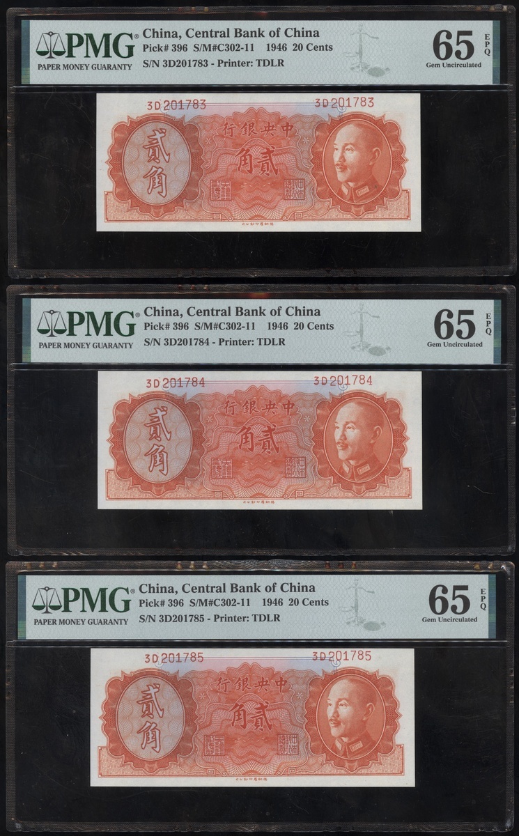 Central Bank of China, (Pick 396), all graded PMG 65EPQ Gem Uncirculated (5)