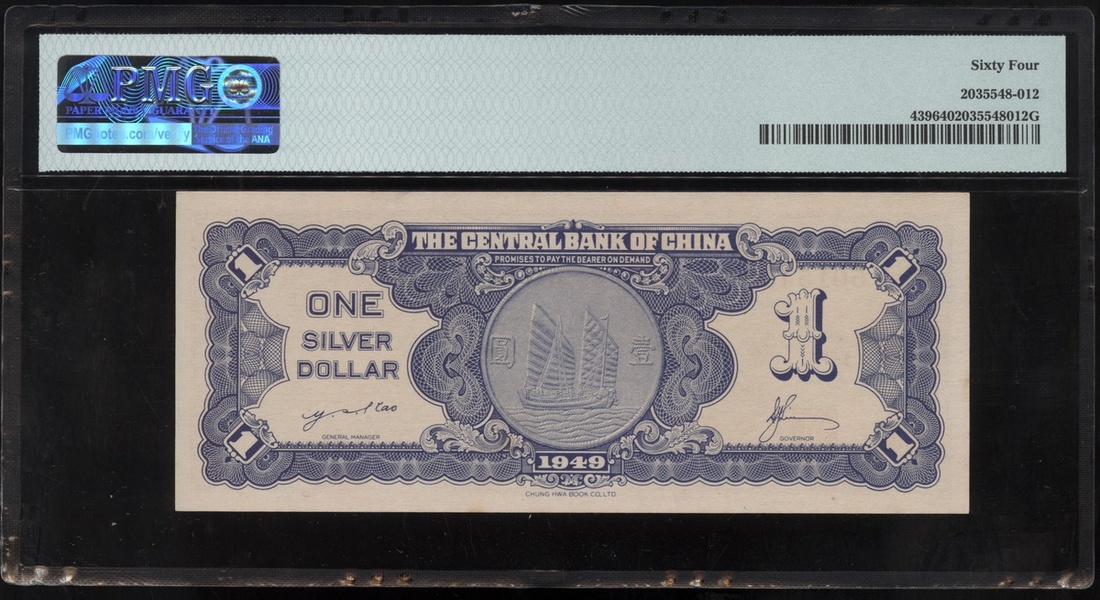 中央銀行銀圓券一組3枚,詳見圖示,分別PMG 64,64及64EPQ