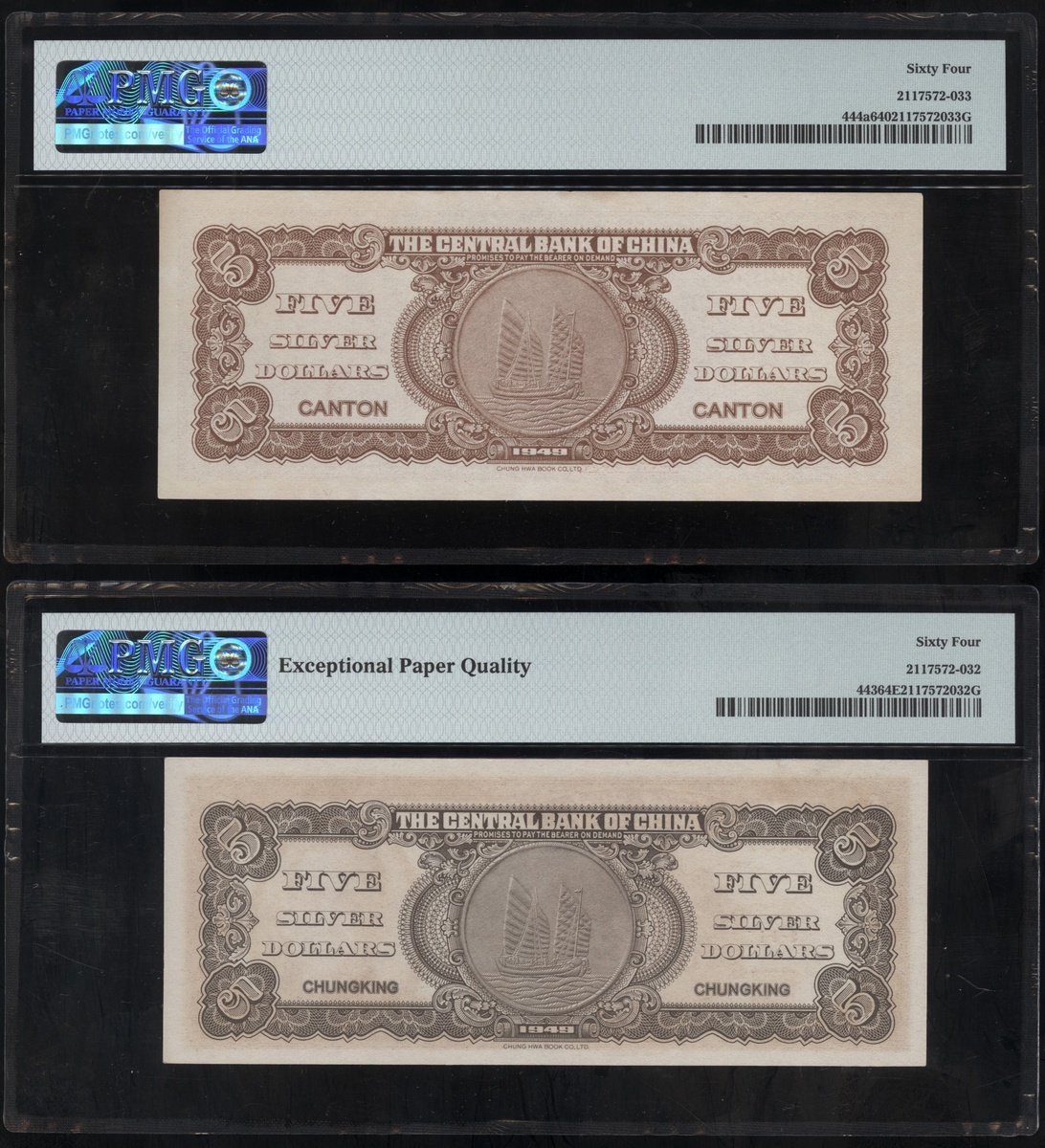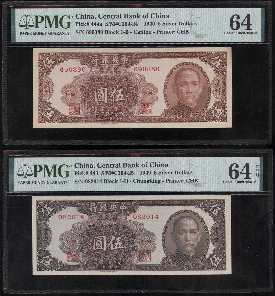 Central Bank of China, (Pick 439, 443 and 444a), graded PMG 64, 64 and 64EPQ respectively (3).