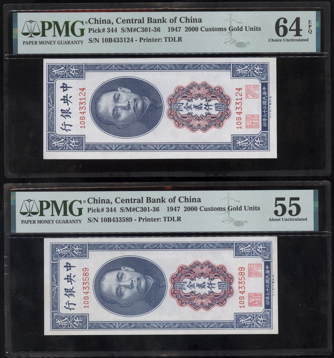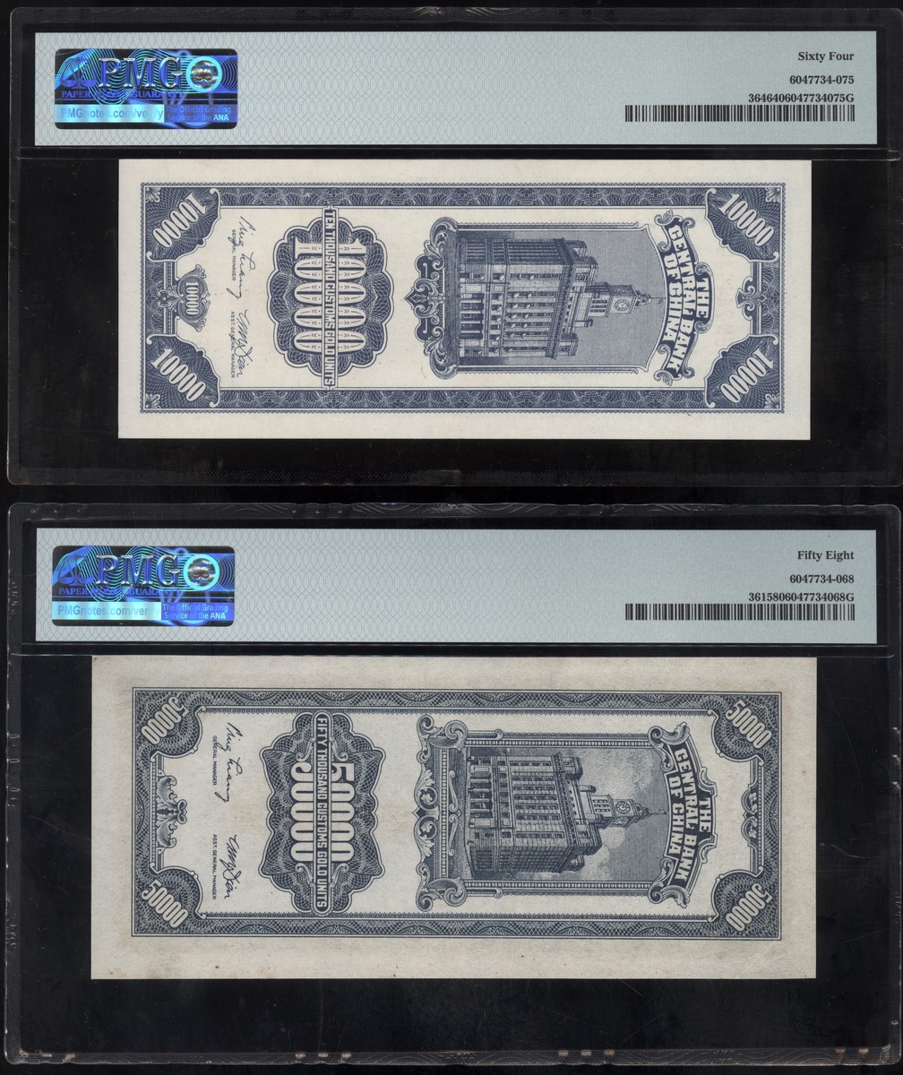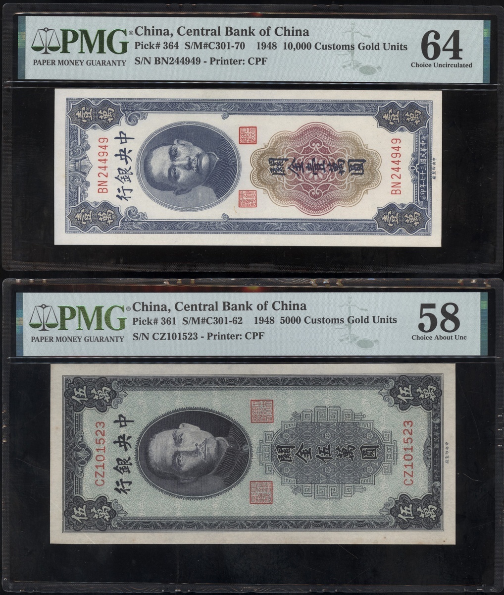 Central Bank of China, (Pick 344, 361, 364), graded PMG 55 About Uncirculated, 64EPQ Choice Uncirculated, 58 Choice About Uncirculated and 64 Choice Uncirculated respectively (4)