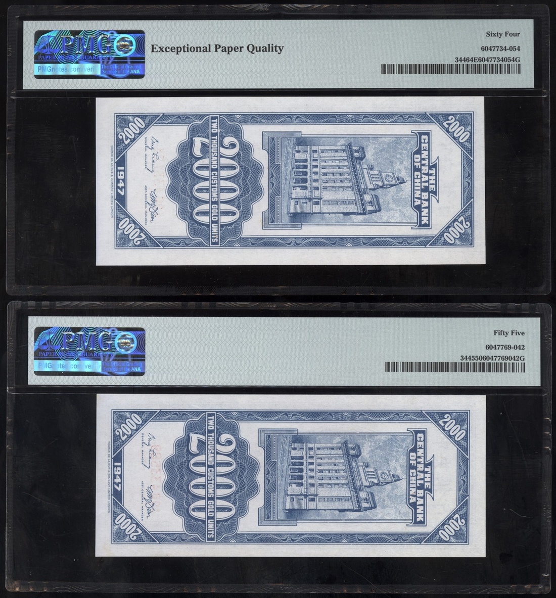 中央銀行關金一組4枚,詳見圖示,PMG 55至64EPQ