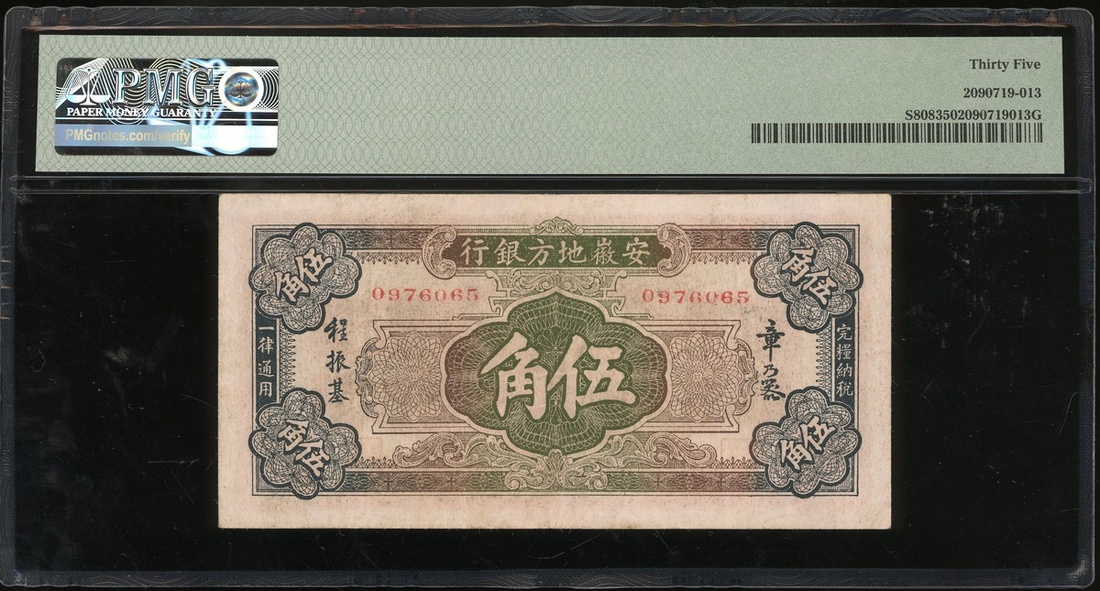 1937年安徽地方銀行伍角,編號0976065,PMG 35
