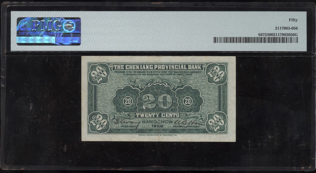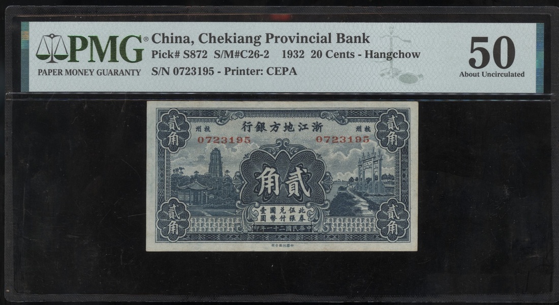 Chekiang Provincial Bank, (Pick S872), PMG 50 About Uncirculated