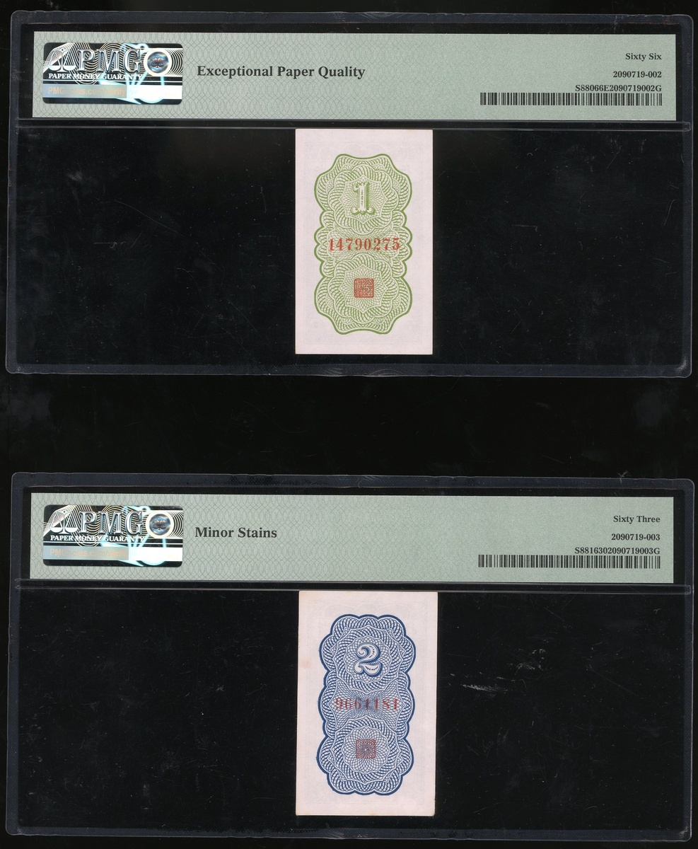 1938年浙江地方銀行,一組3枚,壹分,貳分及伍分,編號14790275, 9661181 及 10617082, 評PMG 66EPQ, 63, 64
