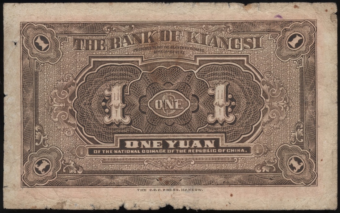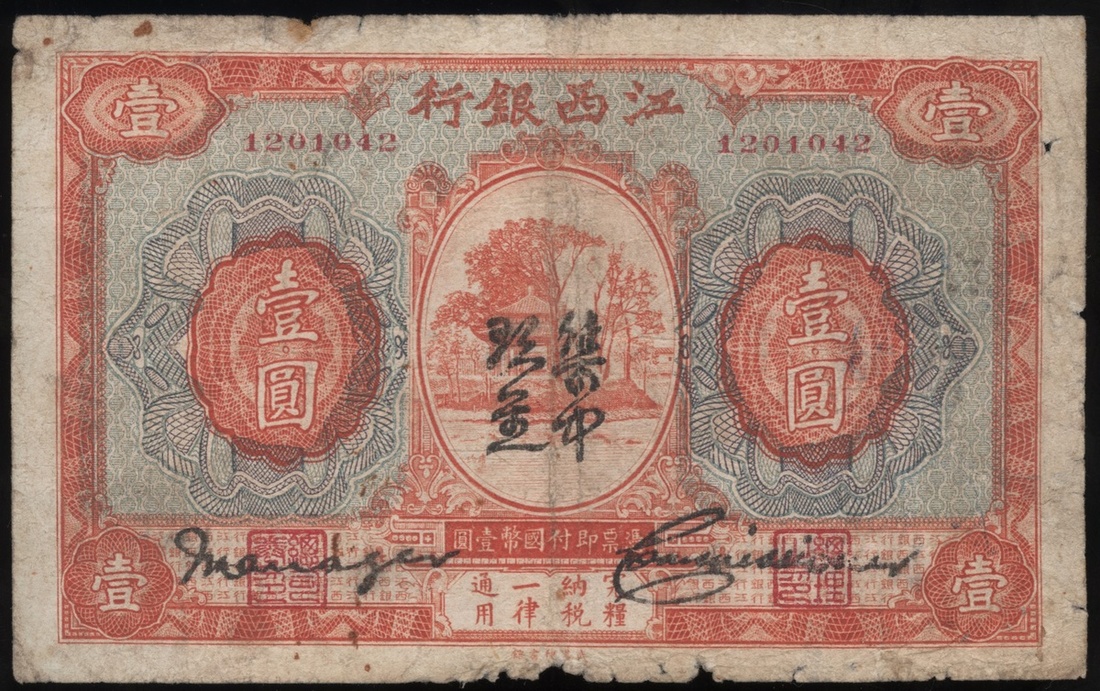 民國時期江西銀行「集中現金」壹圓,編號1201042,F