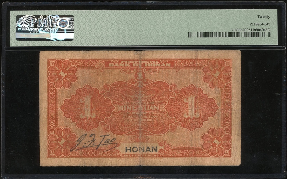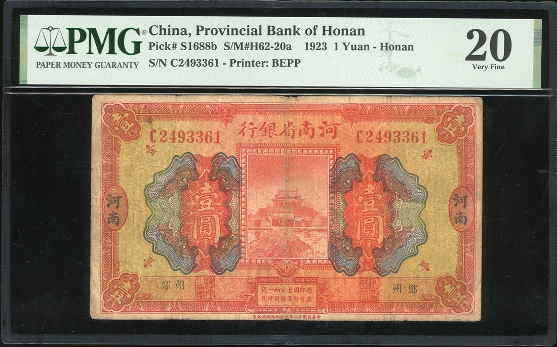 Provincial Bank of Honan, 1 yuan, Honan, 1923, serial number C2493361, (Pick S1688b), PMG 20 Very Fine