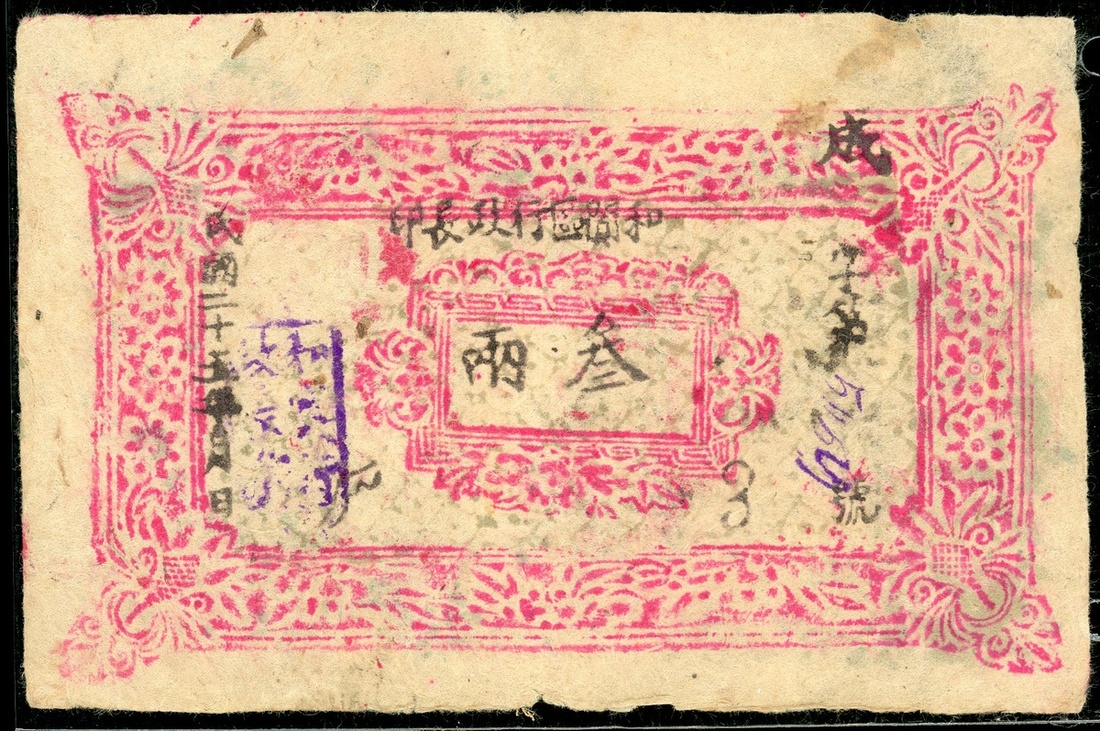 民國二十五年新疆和闐區叁兩,AEF