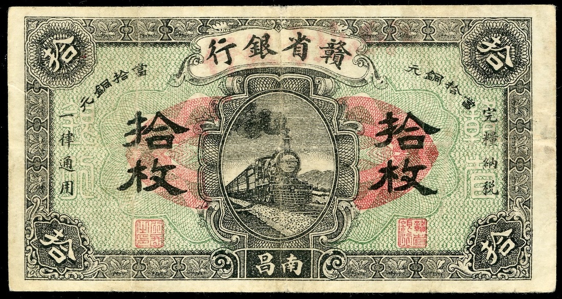 民國十四年贛省銀行拾枚,南昌地名,編號772181,GF