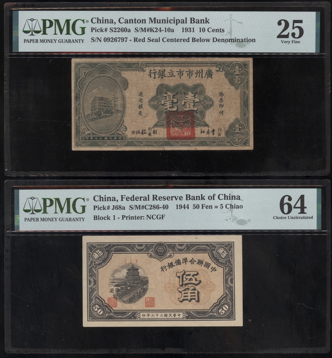 Republican China, (Pick S2260a, J68a), PMG 25 Very Fine-64 Choice Uncirculated (2)