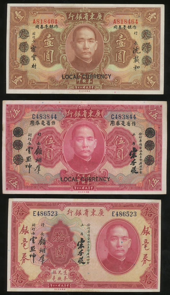 Provincial Bank of Kwangtung, group of 3 notes, $1, $5 and $10, all dated 1931, extremely fine or better (3)