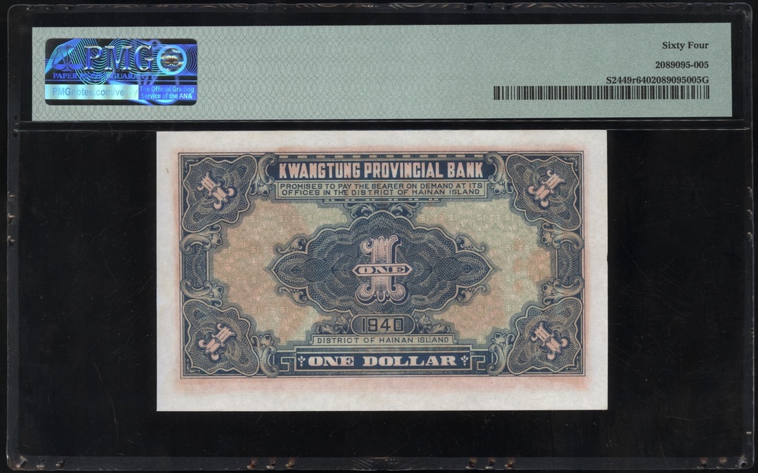 Kwangtung Provincial Bank, $1, remainder, Hainan, Year 29 (1940), serial number 1421236, (Pick S2449r), PMG 64 Choice Uncirculated
