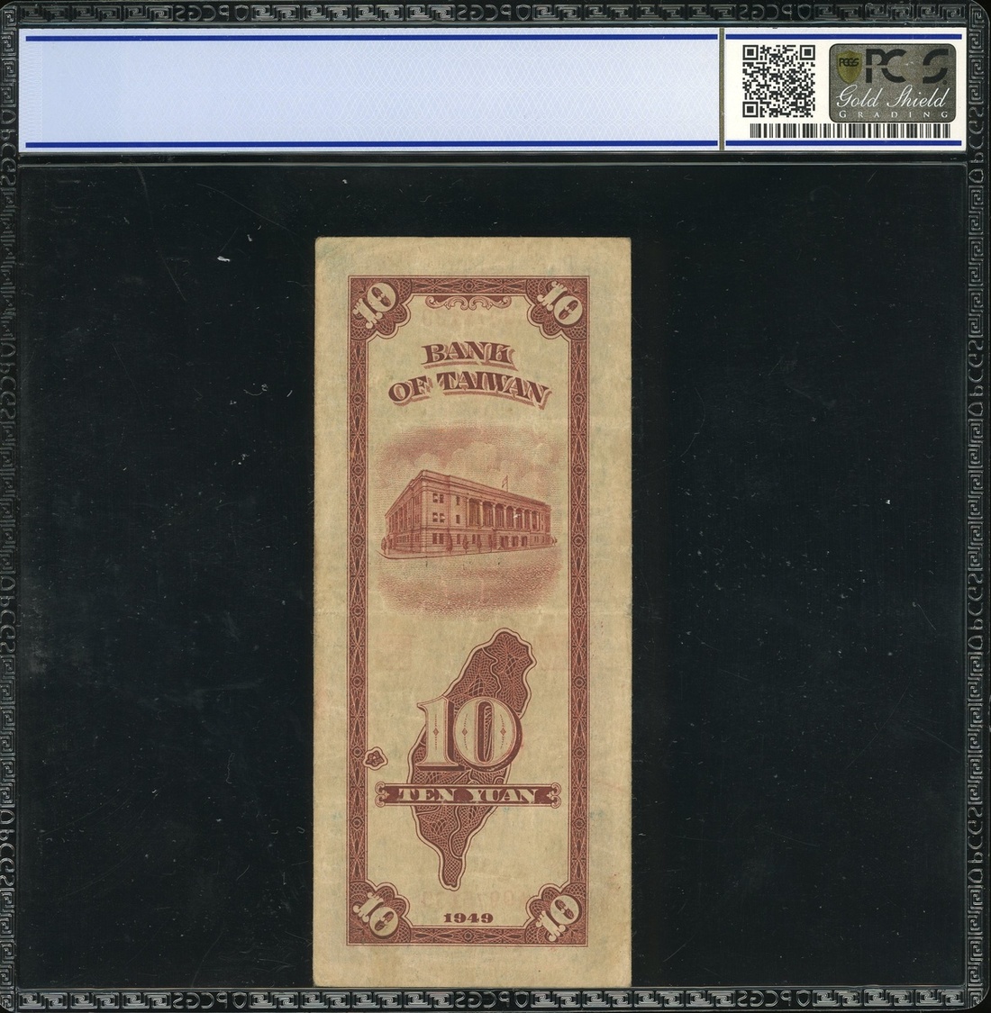 民國三十八年台灣銀行拾圓一對,編號AQ975139及C760184F,分別評PCGS Gold Shield Grading 30 及 58