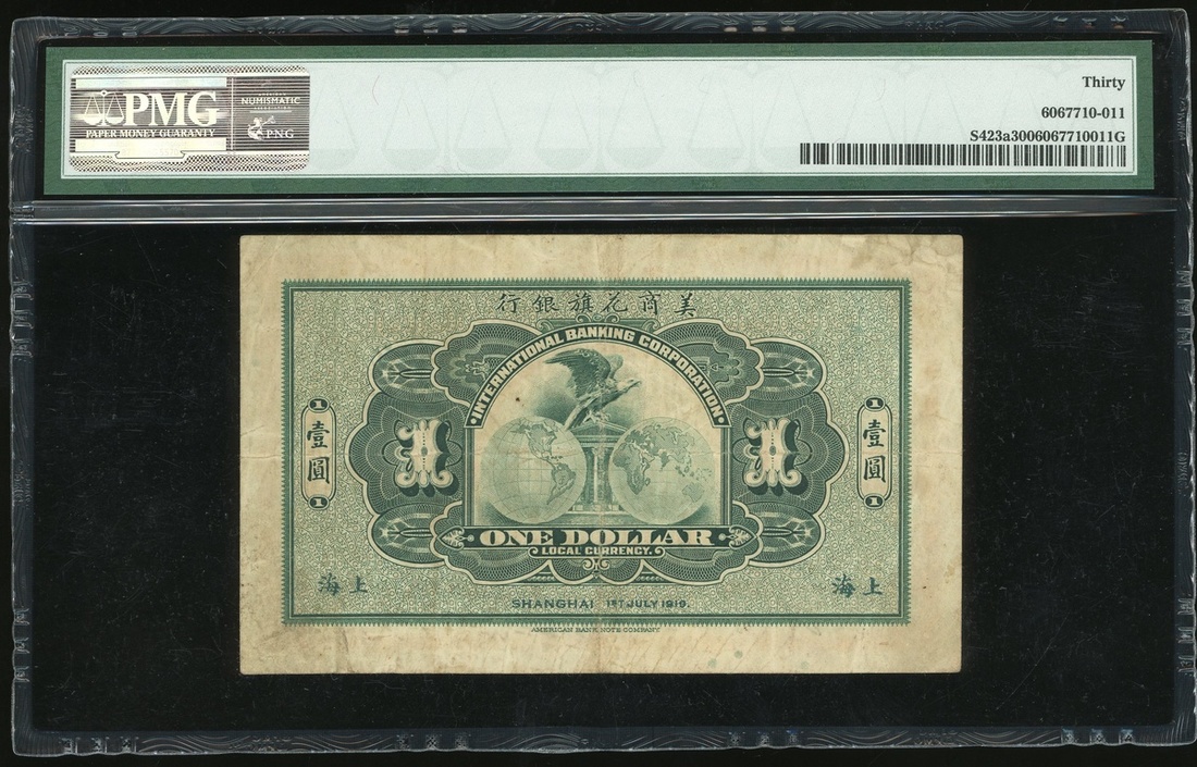 1919年美商花旗銀行壹圓,上海地名,編號121956,PMG 30