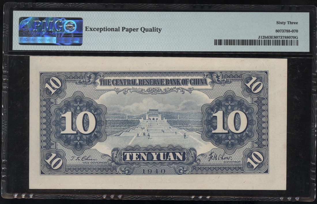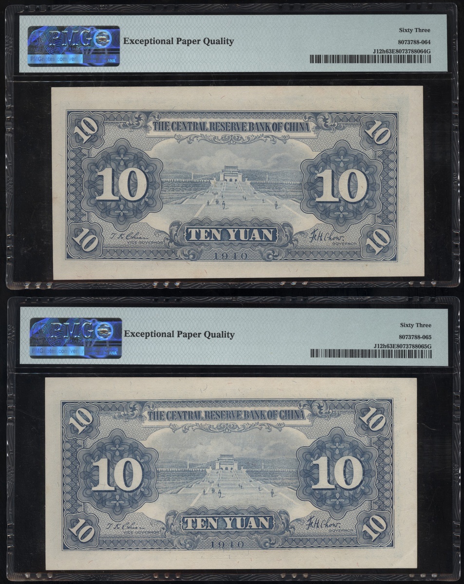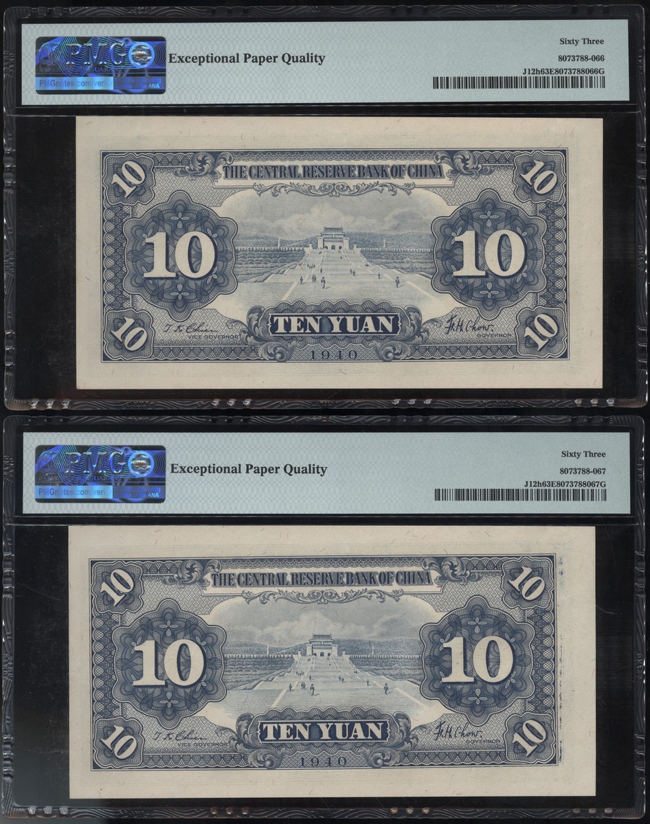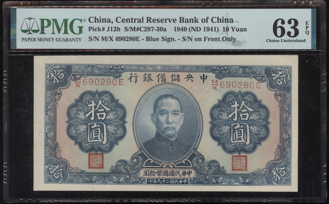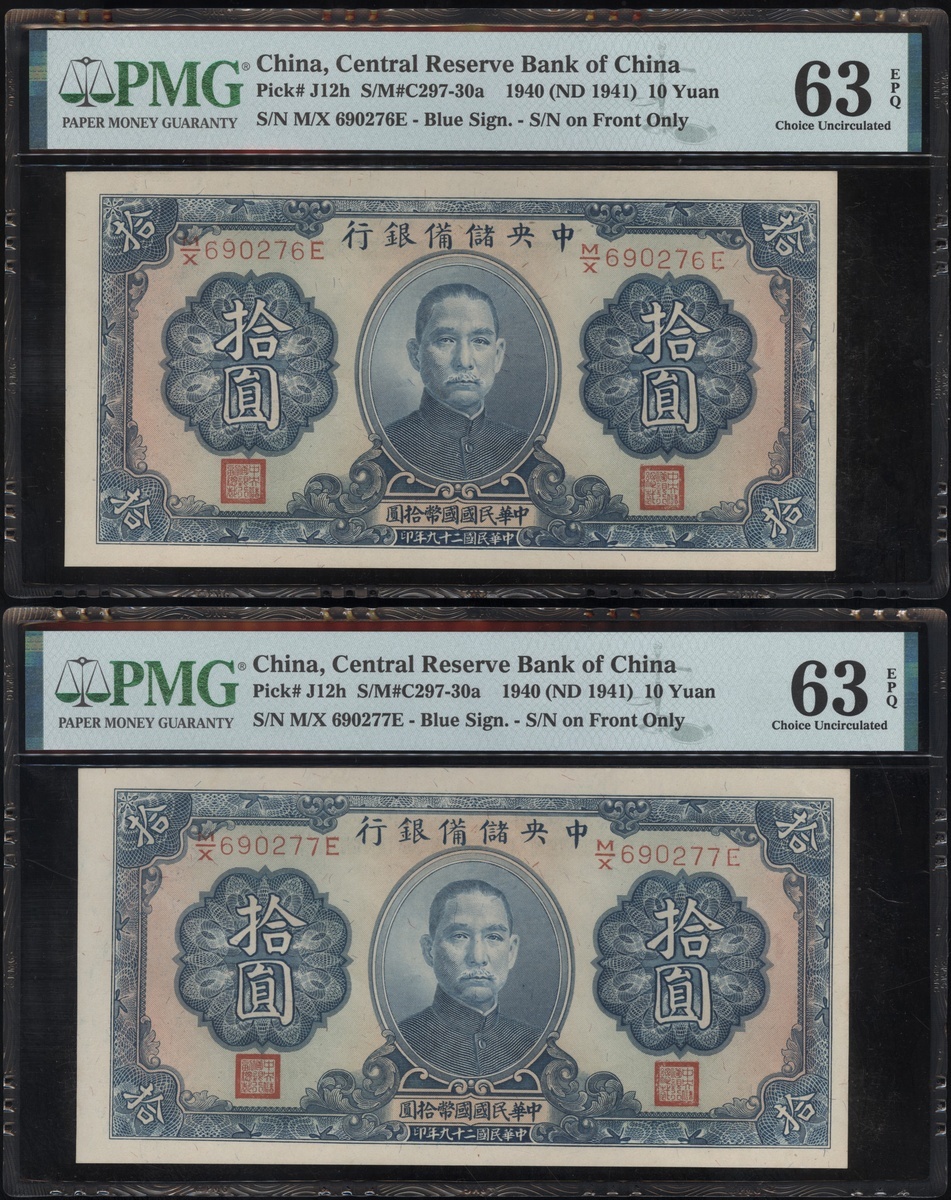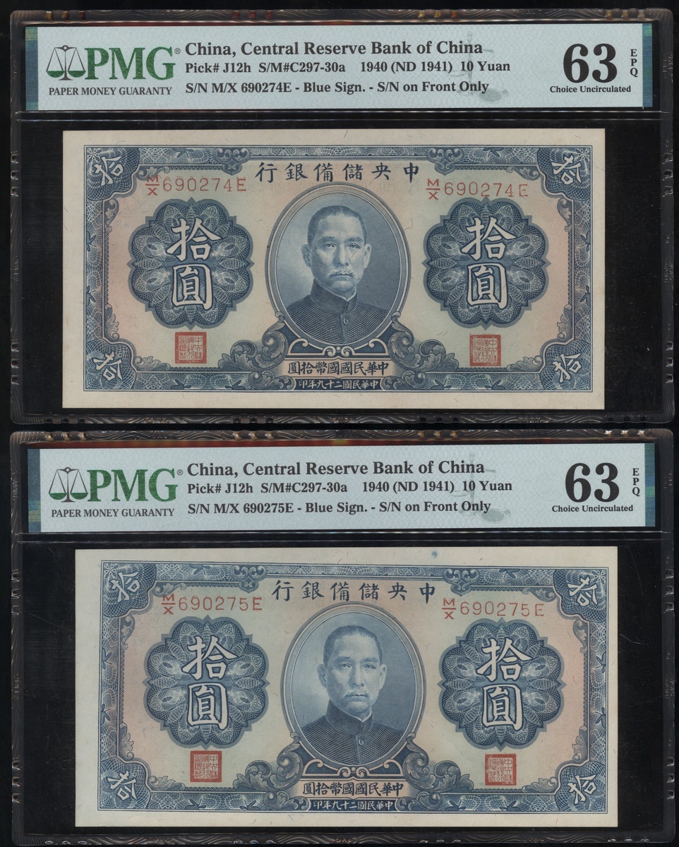 民國29年(1930)中央儲備銀行一組7枚10元,連號M/X 690274E-280E,均PMG 63EPQ