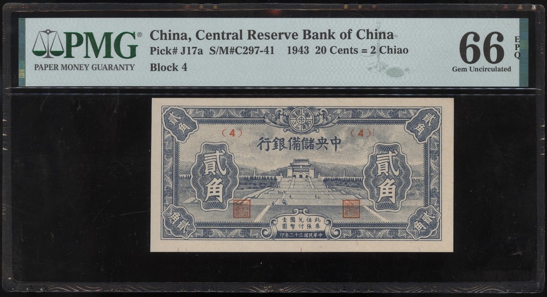 民國三十二年中央儲備銀行貳角,PMG 66EPQ