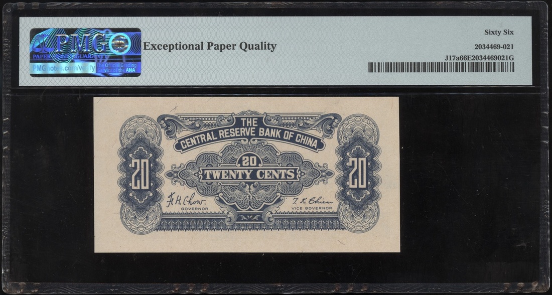 Central Reserve Bank of China, (Pick J17a), PMG 66EPQ Gem Uncirculated. The highest grade in the PMG population report,