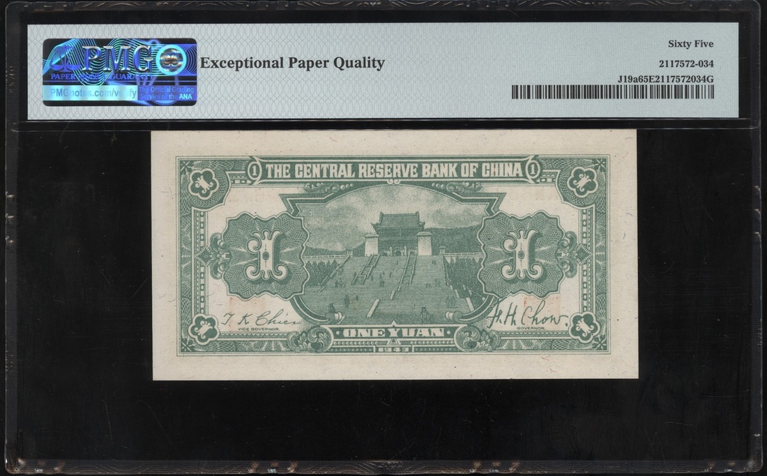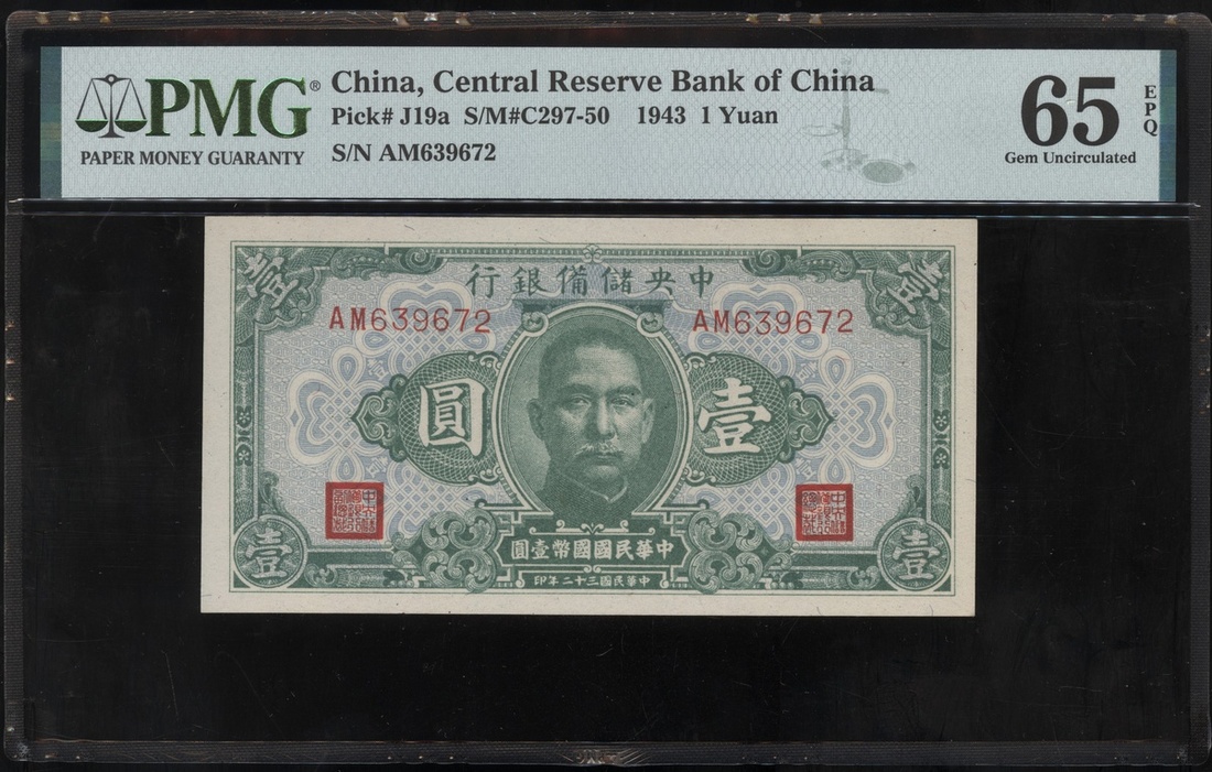 民國三十二年中央儲備銀行壹圓,編號AM639672,PMG 65EPQ