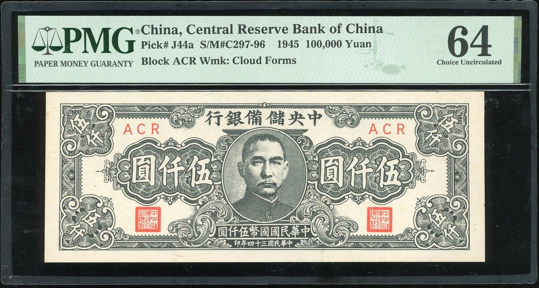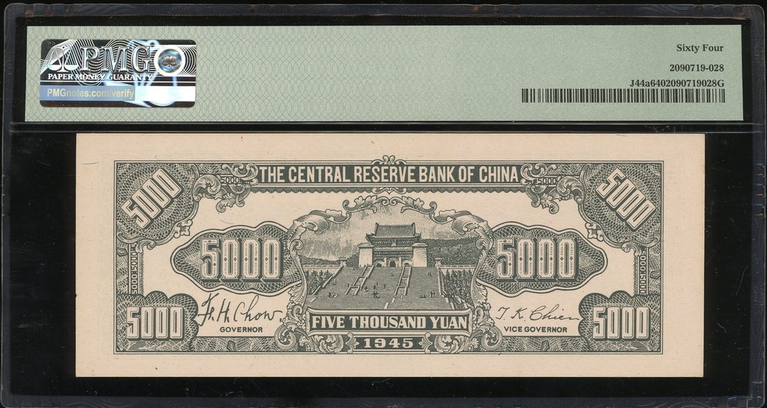 Central Reserve Bank of China, 5000 yuan, Year 34(1945), block ACR, (Pick J44a), PMG 64 Choice Uncirculated