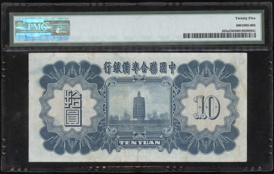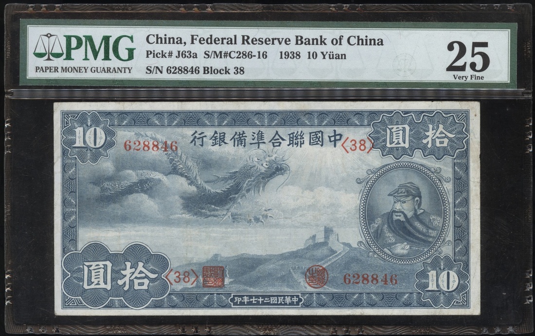 民國27年(1938)中國聯合準備銀行10元,編號628846,PMG 25
