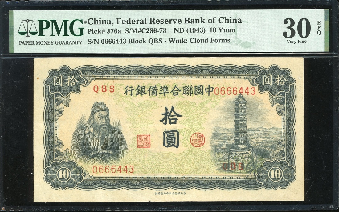 Federal Reserve Bank of China, (Pick J76a), PMG 30EPQ Very Fine