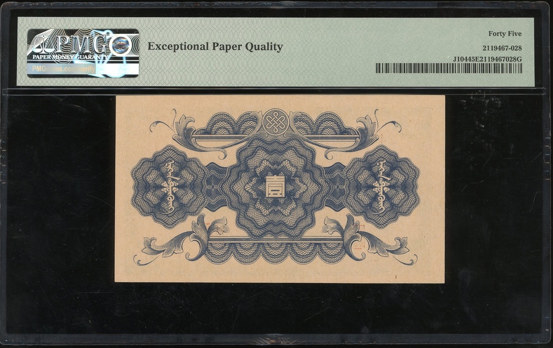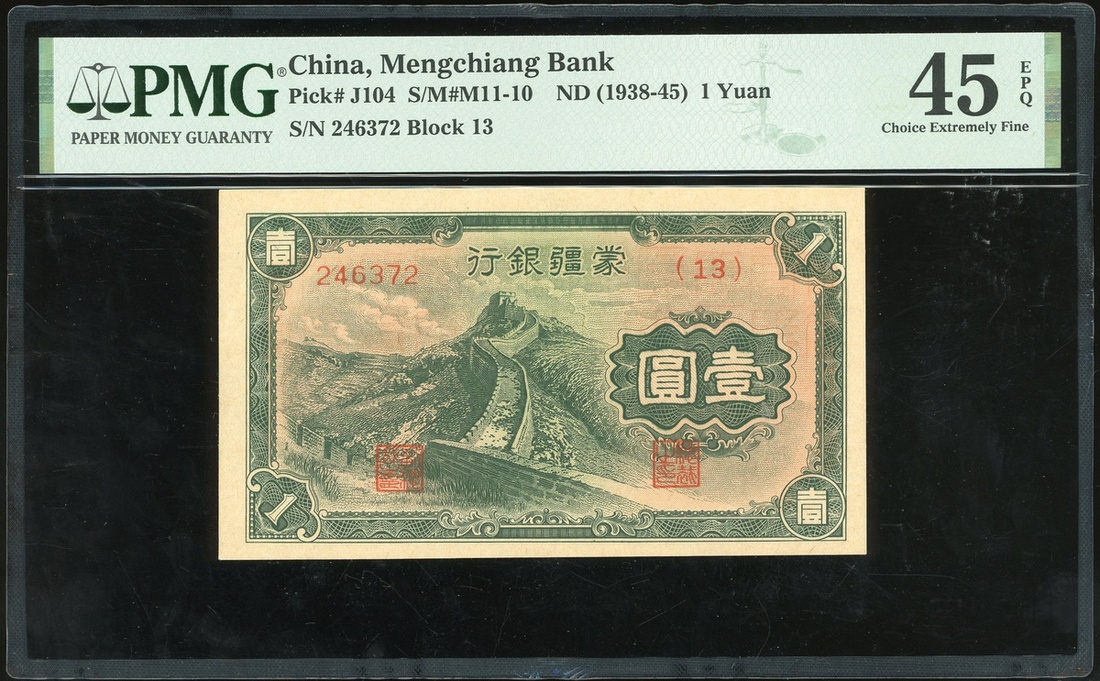 1938-45年蒙疆銀行壹圓,編號246372,PMG 45EPQ
