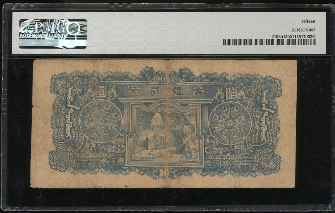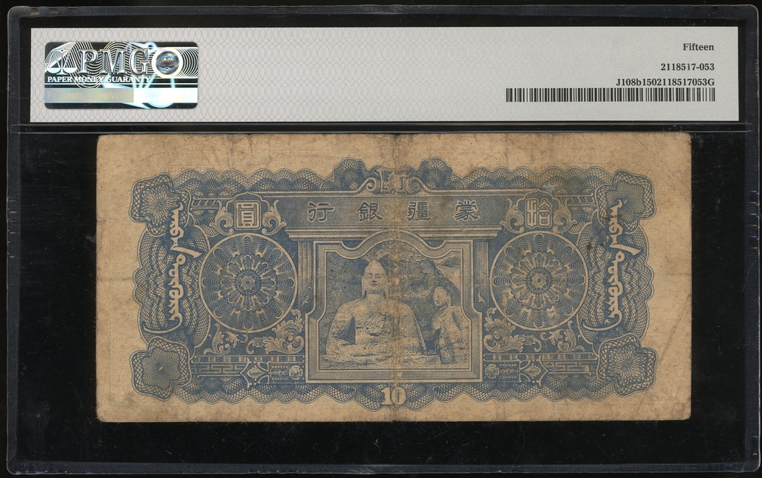 1944年蒙疆銀行10元一對,編號491935 (53)及859319 (36),均PMG 15